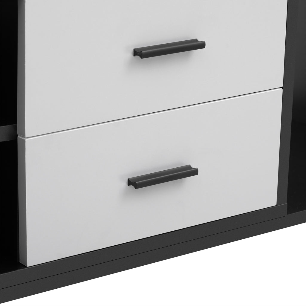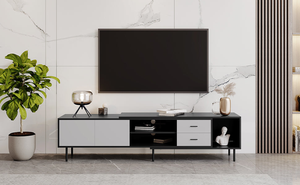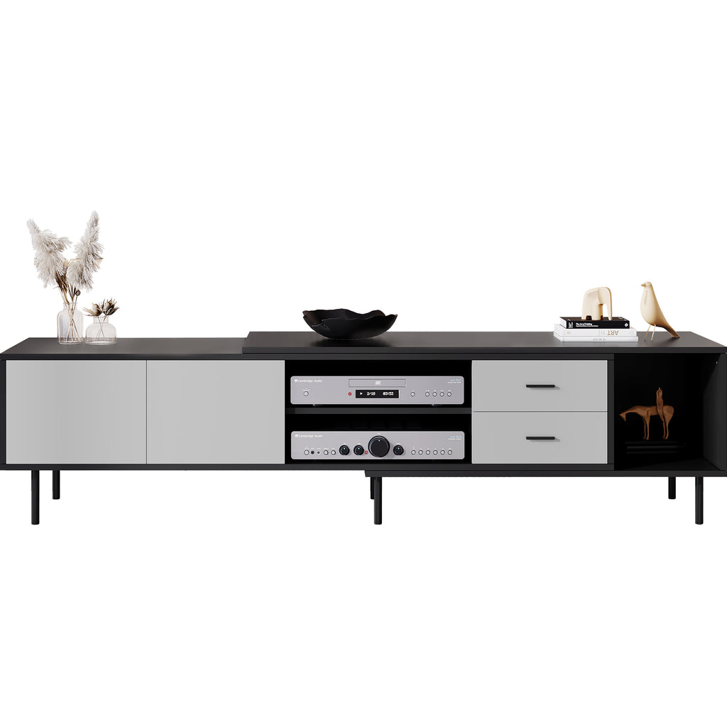 - [ Multi-Purpose Cabinet & Concealed Storage ] This TV cabinet is a storage master. In addition to the TV, you can also put TV components, game accessories, books, decorations and so on. With a simple, geometric construction, this entertainment center provides open shelving space for all of your beautiful decors, magazines, or books.