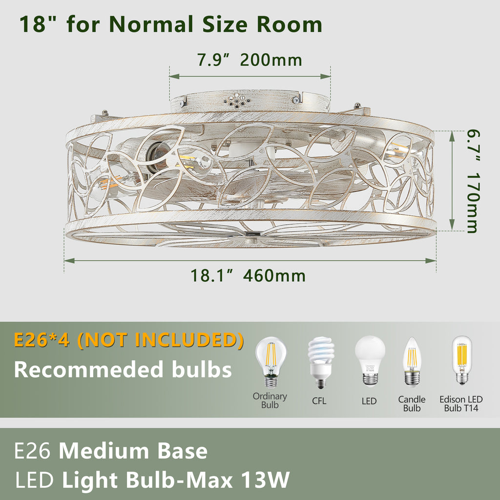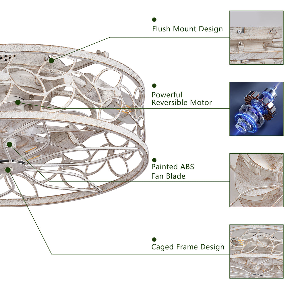 18-inch White Vintage Caged Ceiling Fan Light – Quiet Operation, Remote Control, Industrial Style