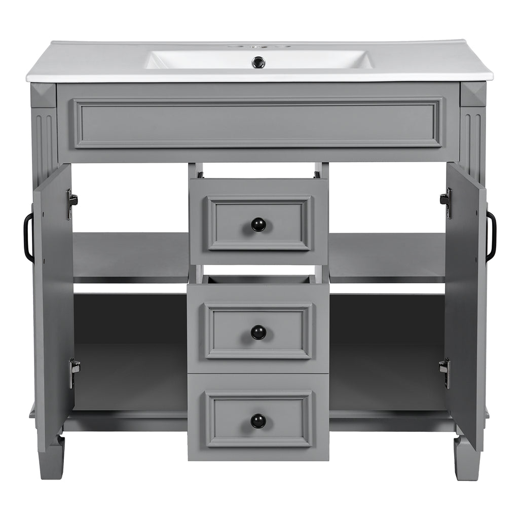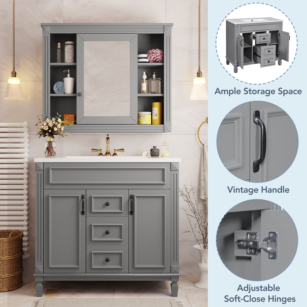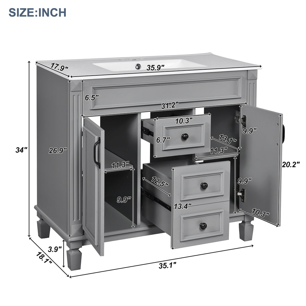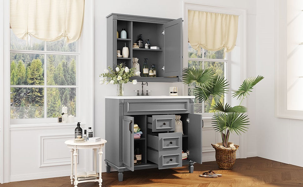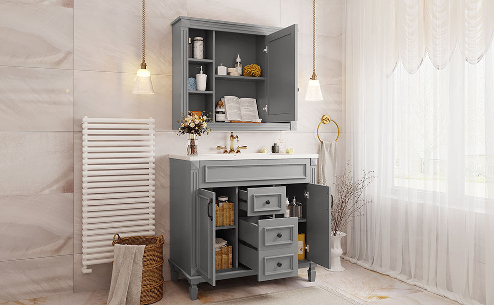 - [ Multi-Purpose Cabinet & Concealed Storage ] Are you looking for stylish and functional storage solutions for your bathroom? Our bathroom vanity provide ample space for all your toiletries and bathroom essentials. The combination of the cabinet body and the drawer perfectly stores all kinds of bathroom products and keeps the necessities away from water stains and dust. Soft-close doors and drawer fronts feature a water-resistant paint finish for durability.