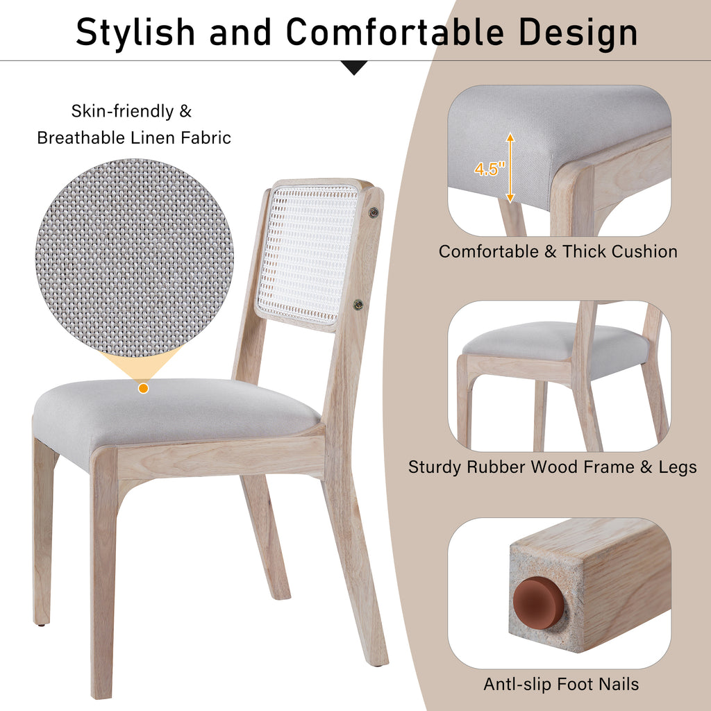 • Luxe Comfor: This dining chair comes with a 17*17 inch seat cushion,The seat cushion is an impressive4.5 inche, providing ample padding and support. And the breathable rattan backrest construction ensures exceptional comfort, making every moment seated a soothing experience.