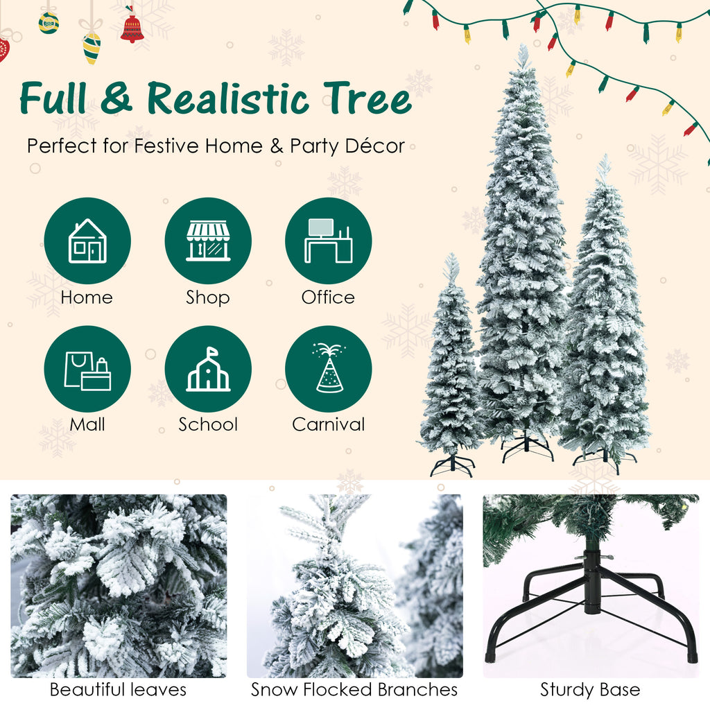 8FT, 6FT, 4FT Pre-Lit Pencil Christmas Trees, Set of 3 Flocked Fir Slim Christmas Trees, Xmas Holiday Decoration Tree, 1370 PE Branch Tips, 290 LED Lights with 11 Lighting Modes