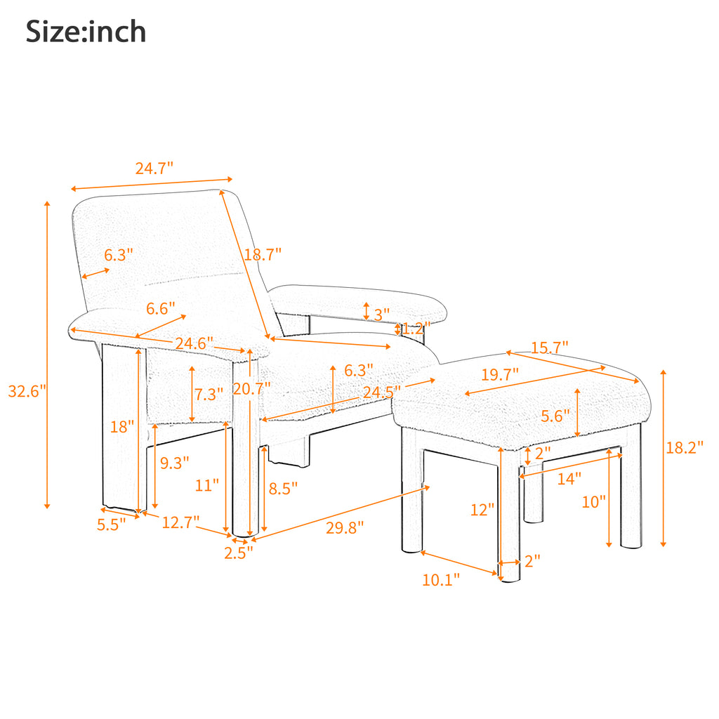 U-Can Modern Accent Chair with Ottoman, Mid Century Lounge Chair with footrest, Comfy Fabric Armchair Upholstered Set with Solid Wood Frame for Living Room