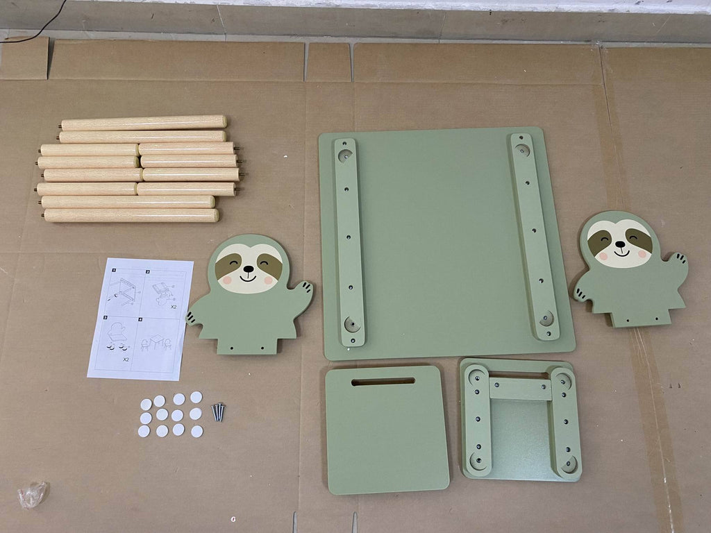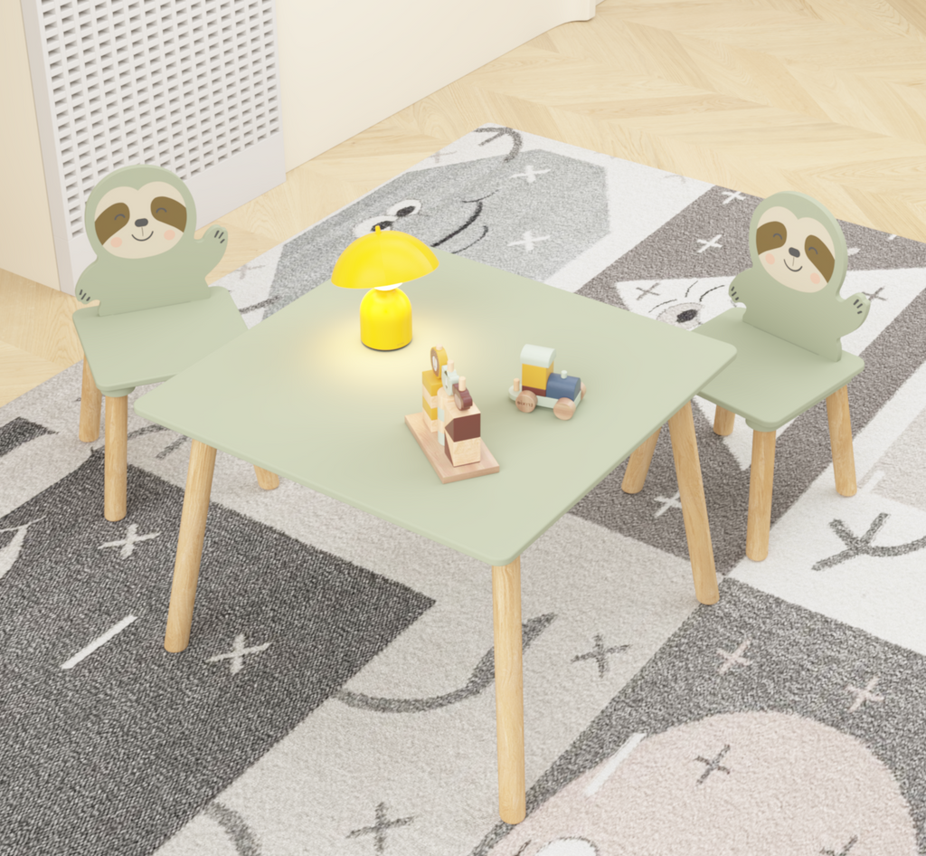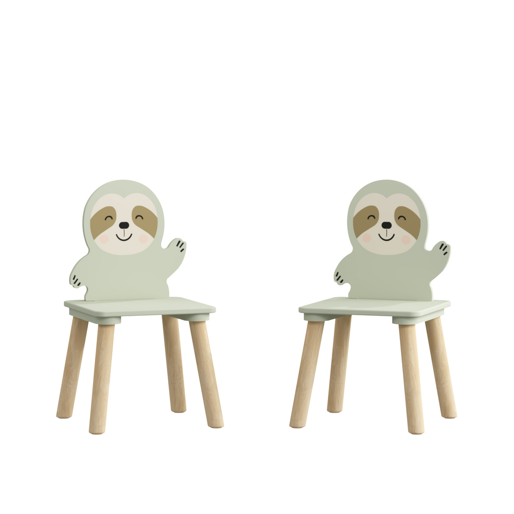 • 【Adorable Sloth-Themed Kids Table & Chair Set】This charming toddler table and chair set features two cute sloth-shaped chairs that instantly warm up any space. The playful animal design sparks imagination and makes this kids table and chairs set perfect for the playroom, bedroom, daycare, or preschool classroom.