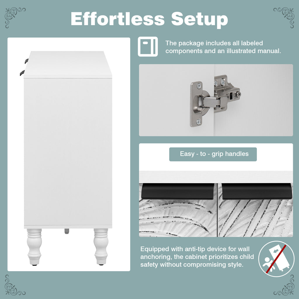 - The four Roman column legs, along with a center leg, offer significant stability and durability to the storage cabinet. Their thoughtful design, coupled with the central support, maximizes practicality, enabling safe and effective storage of various items. This design enhances daily home life convenience and comfort, making storage cabinets a vital addition to any living space.