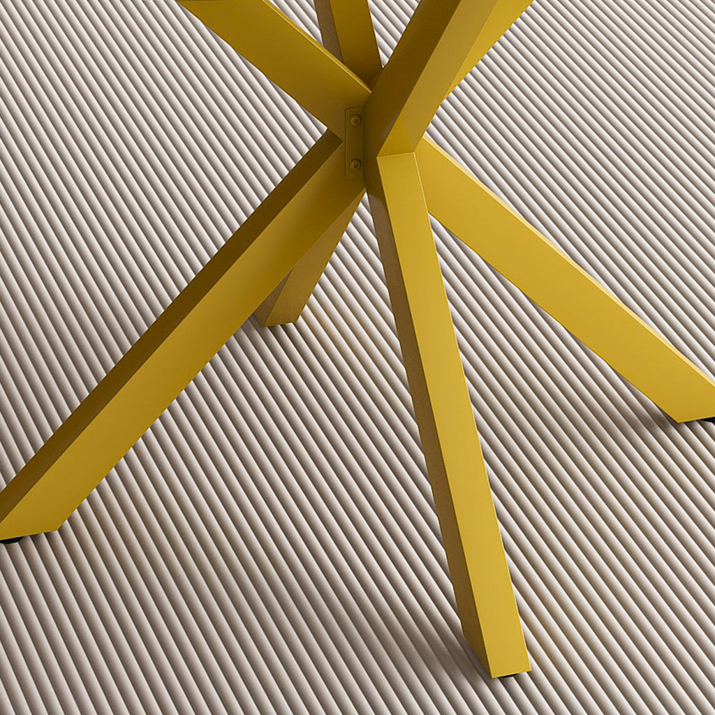 • Elegant Round Dining Table: Featuring a marble-veined tabletop and a robust carbon steel X-base, this table exudes sophistication and modern durability. Its adjustable length seamlessly adapts to any room size.