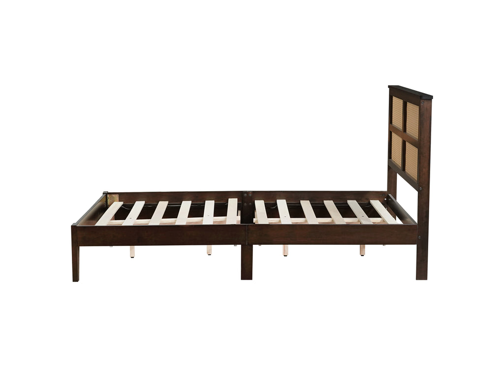 - #1 [Unique Rattan Headboard]The distinctive intricately interwoven Rattan Headboard of this bed harmoniously infuse your bedroom décor with a vintage attraction and fostering a cozy yet fashionable ambiance. Moreover, the bed is an example of superior craftsmanship and long-lasting materials further elevating its overall aesthetic appeal.