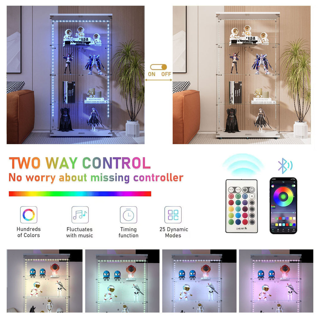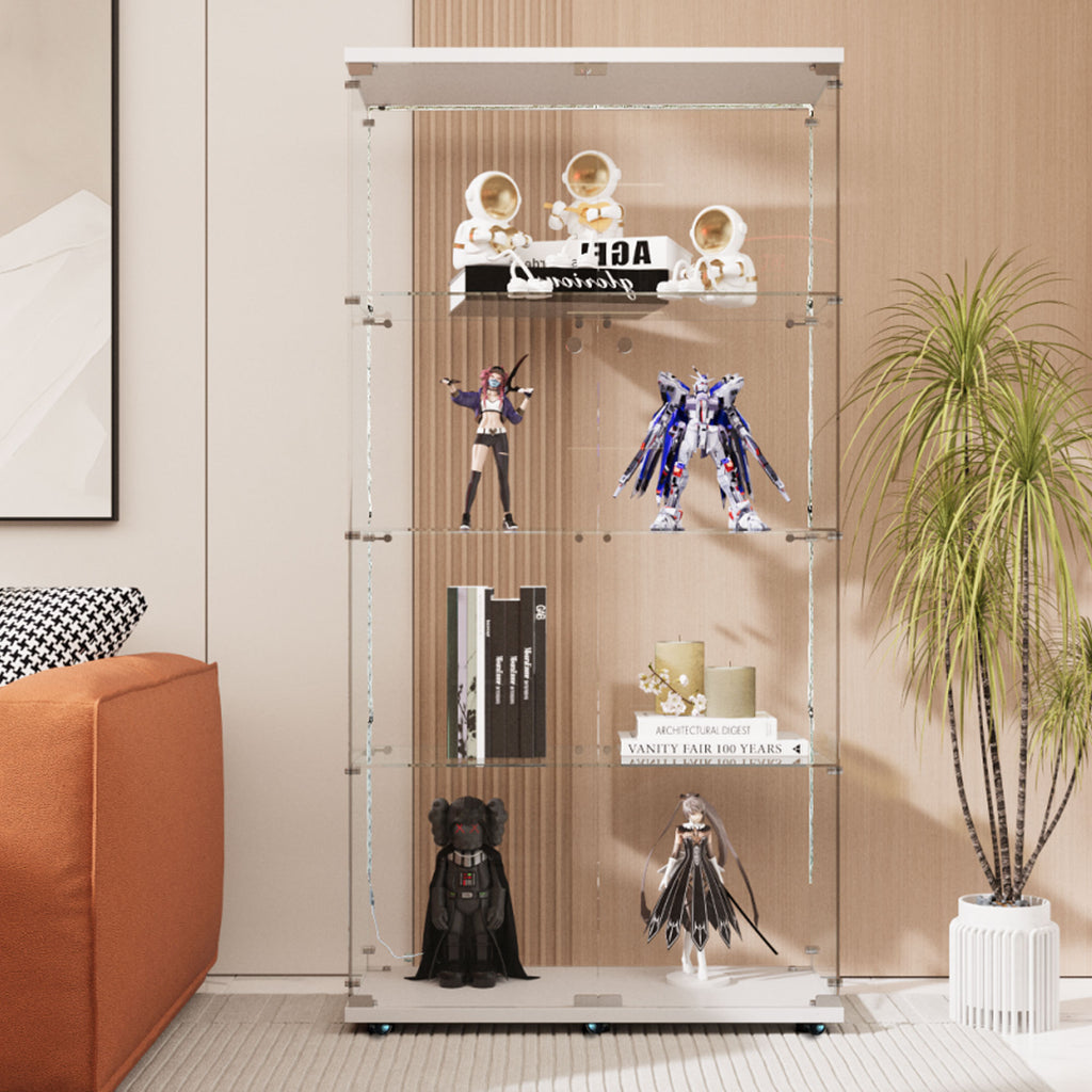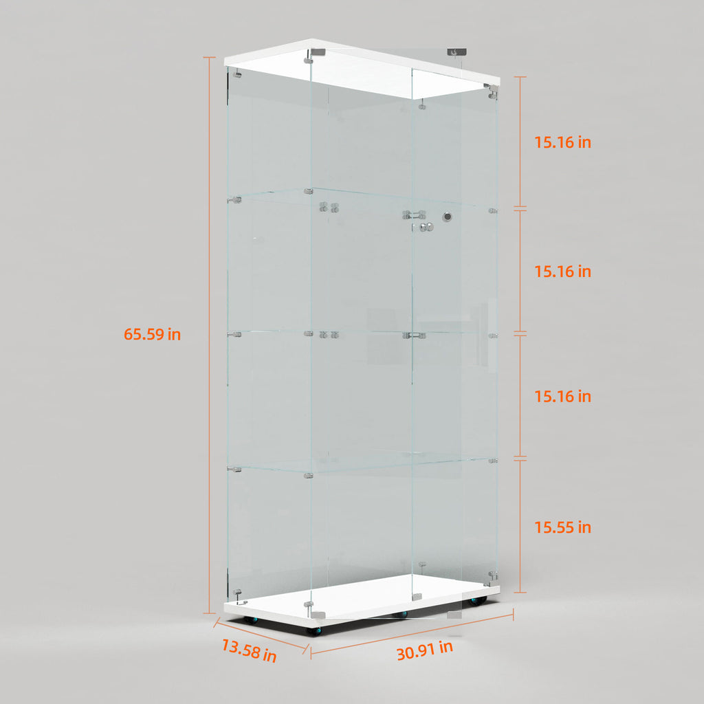 • Tempered Glass Display Cabinet: Measures65.87' (H) x30.91' (L) x13.58' (W), with an overall weight capacity of 110 lbs, each tempered glass shelf can hold up to lbs,Color: white