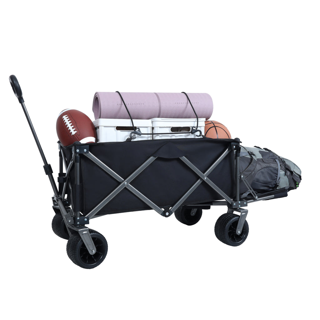 • All-Terrain PerformanceEquipped with large 7-inch all-terrain wheels and 360° rotating front casters with brakes, this wagon delivers smooth, reliable mobility on grass, gravel, or any rugged surface. Whether you're heading to a campsite or maneuvering around a busy parking lot, you can count on its robust performance.