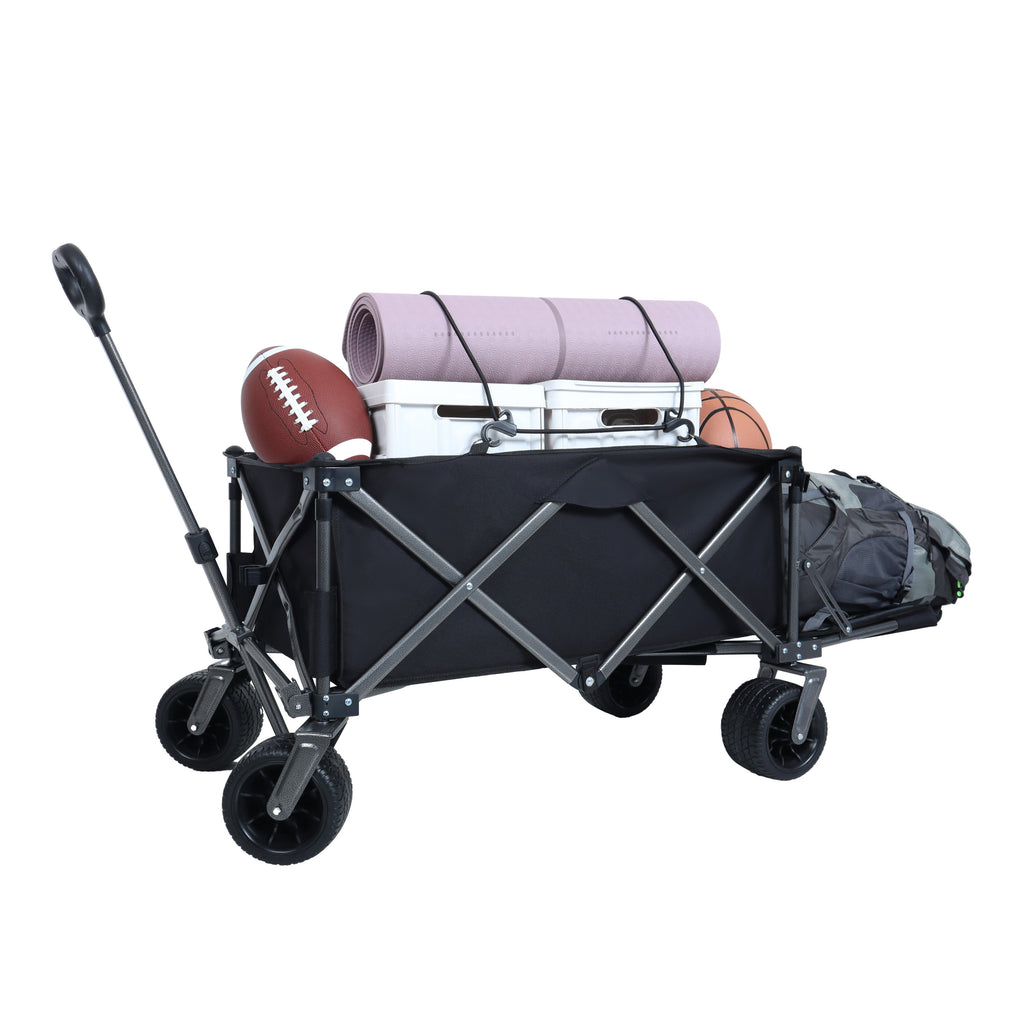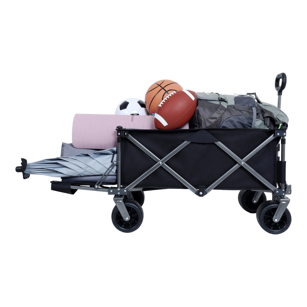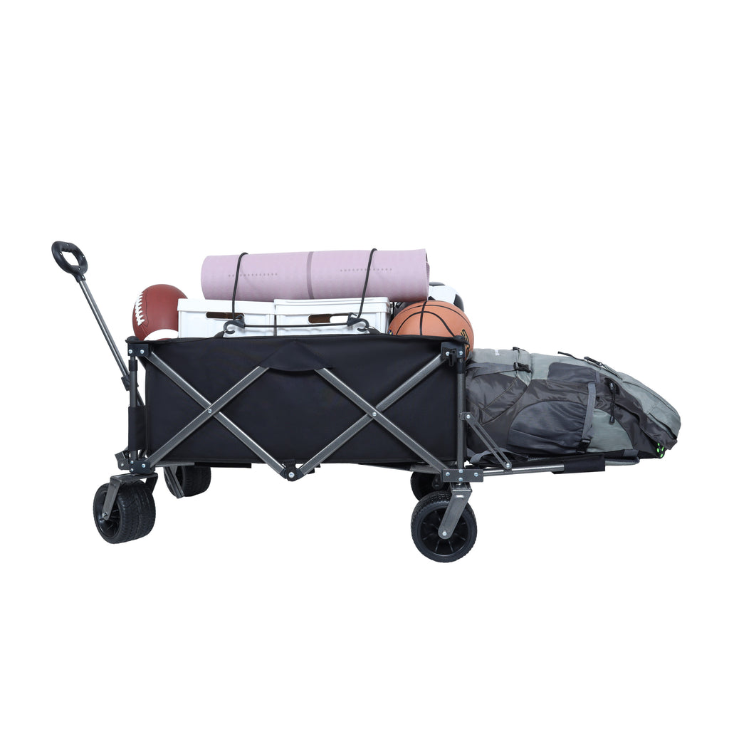 • Spacious & Versatile DesignWith a generous 300L capacity and an extended length of up to 49 inches, this collapsible wagon cart easily accommodates bulky items—from heavy outdoor gear and camping essentials to household goods and groceries. Its flexible design, including an extra-wide 14-inch extendable tailgate, adapts effortlessly to your various transportation needs.