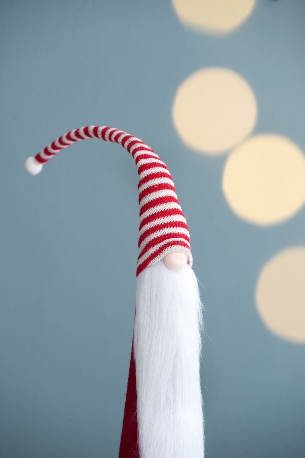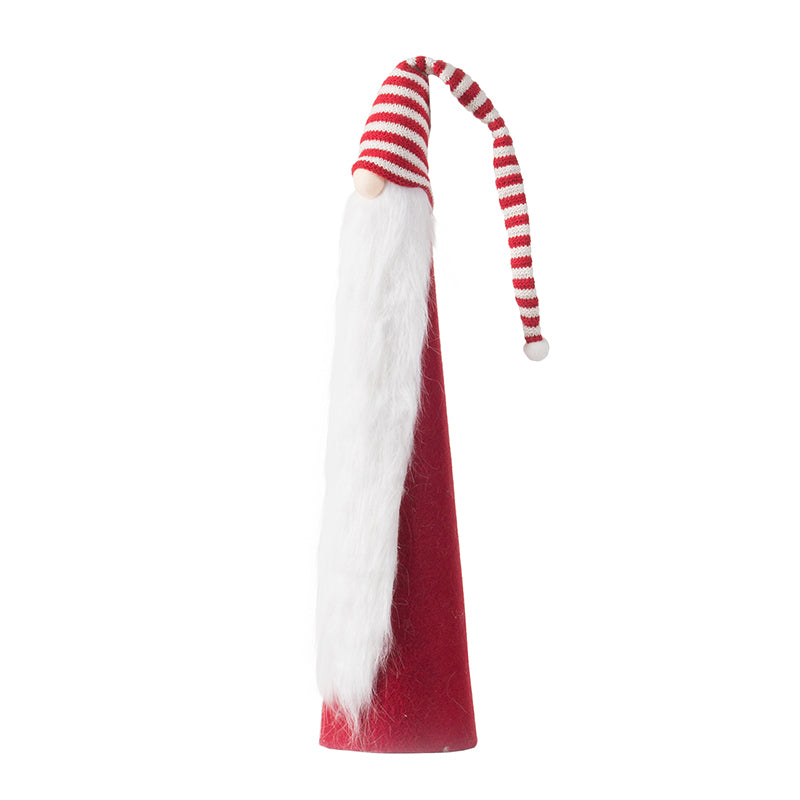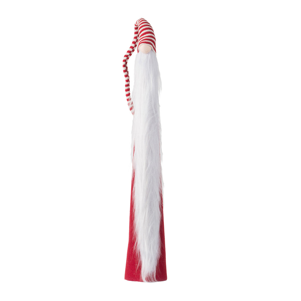 - This set of four Santa skinny gnomes that wear long flowing beards and red and white striped stocking caps are a whimsical addition to Christmas decor.