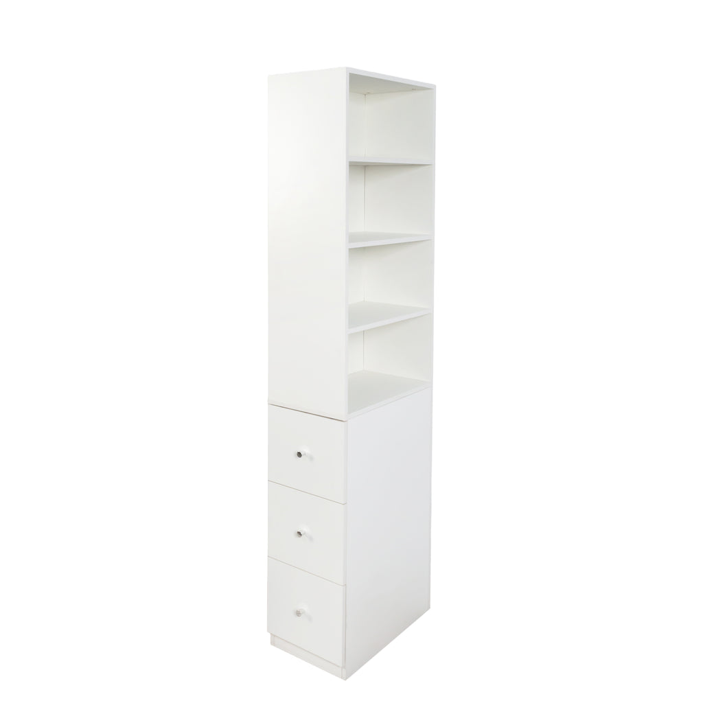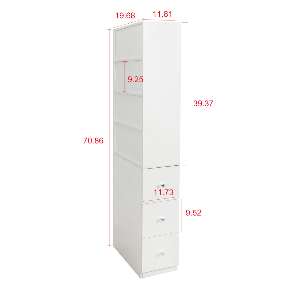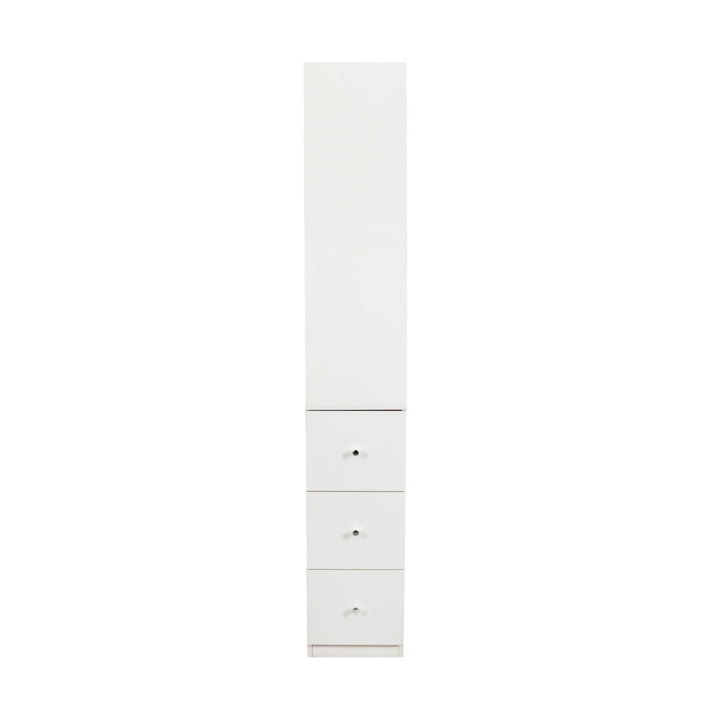 - This tall storage cabinet features 3 drawers and 4 shelves that provide plenty of space for you to store your decorations, wines, tableware, models and more. The drawers can organize clutter to keep your space clean and organized.