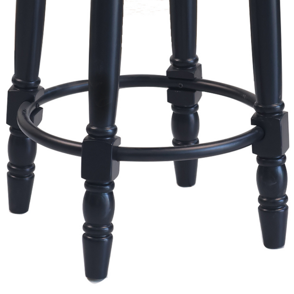 AGODY 360° Swivel Wooden Barstools Set of 2 with Fabric Upholstered Seat, Black Finish, 26' Counter Height