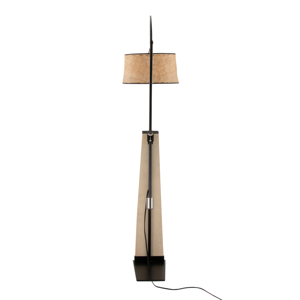 Robyn-Salon Mid-Century Modern Floor Lamp in Natural Wood and Black Metal with Natural Rattan Shade by LumiSource