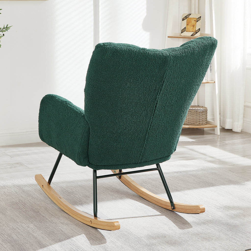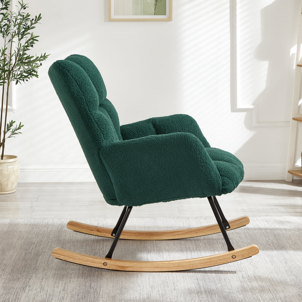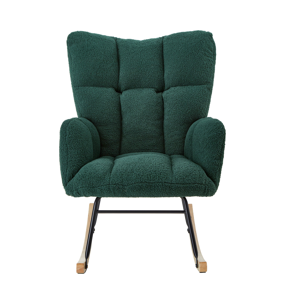 Glider Chair for Living Room Tufted Upholstered Teddy Fabric Rocking Chair with Metal Frame Accent Chair Green
