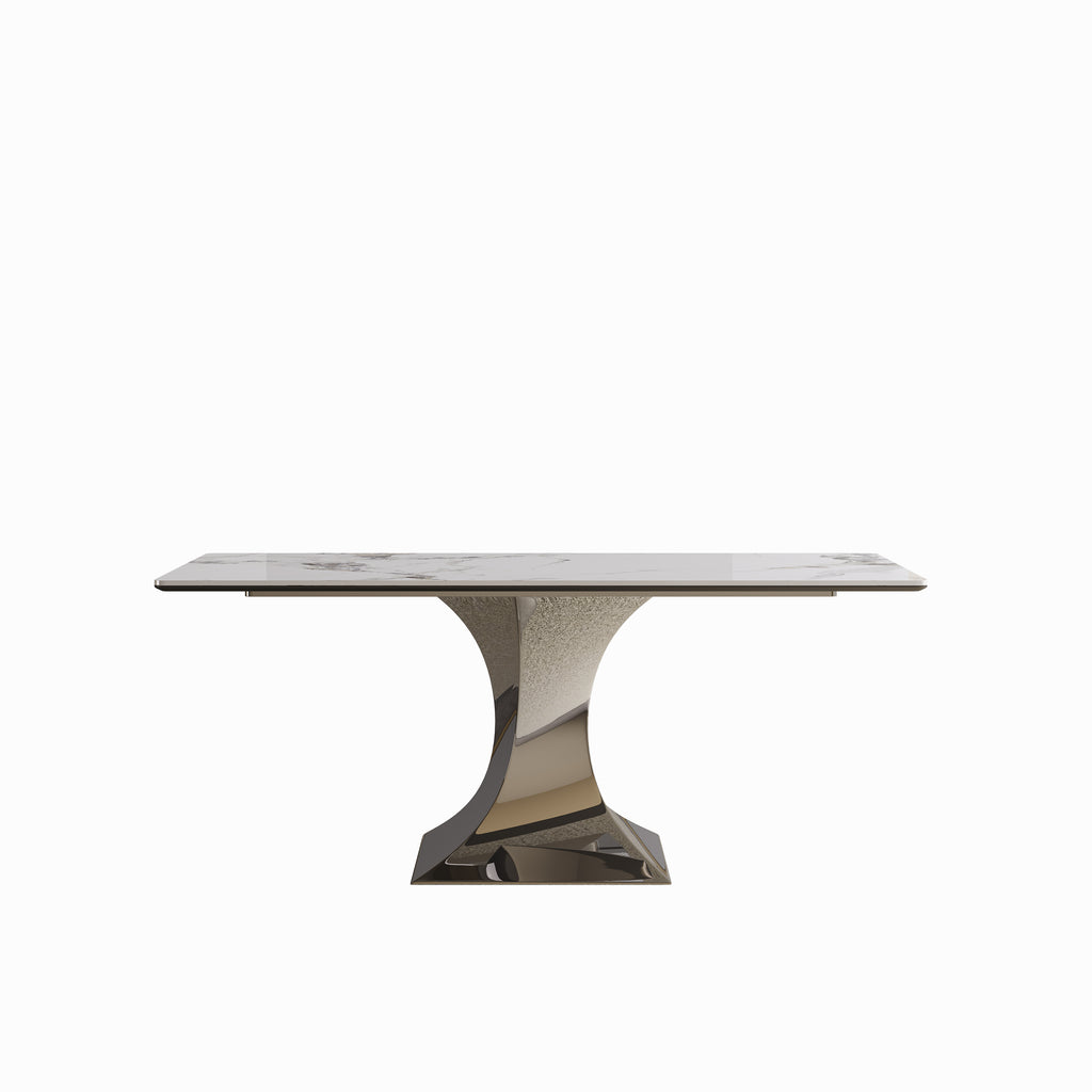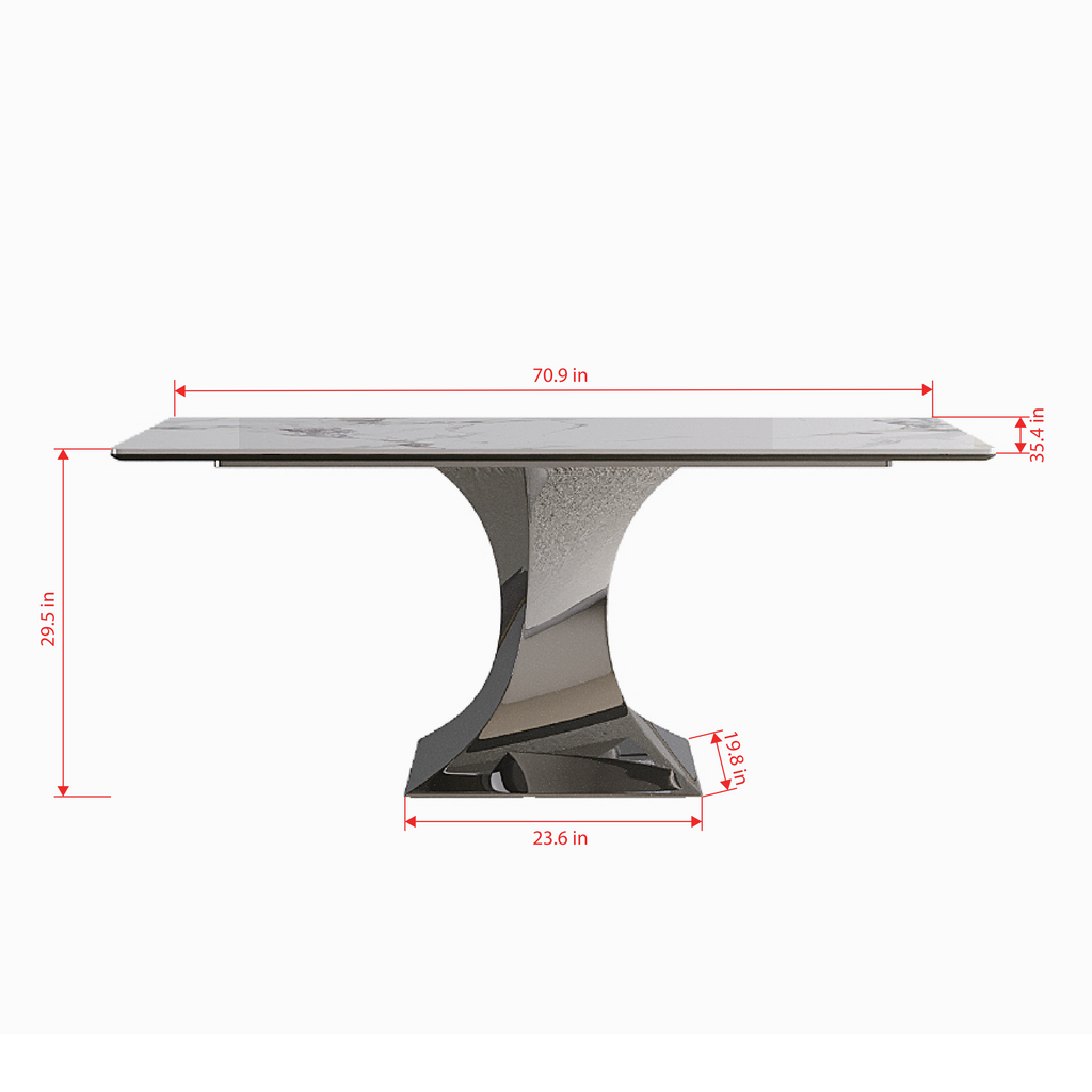 Modern Rectangular Dining Table with Stainless Steel Black Titanium Hourglass Base, Sintered Stone Top, 71 Inches