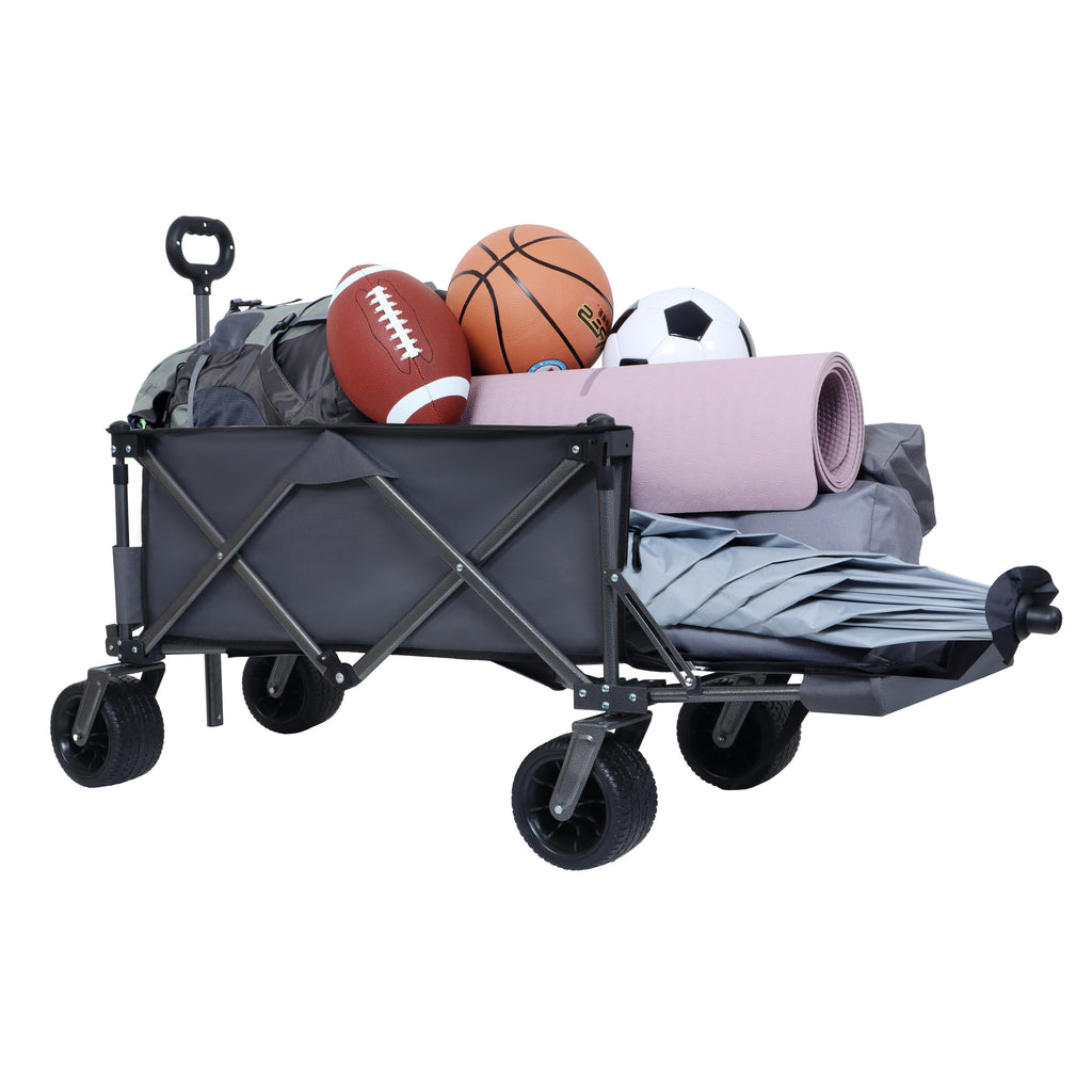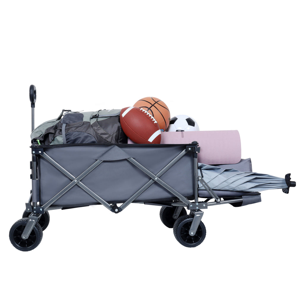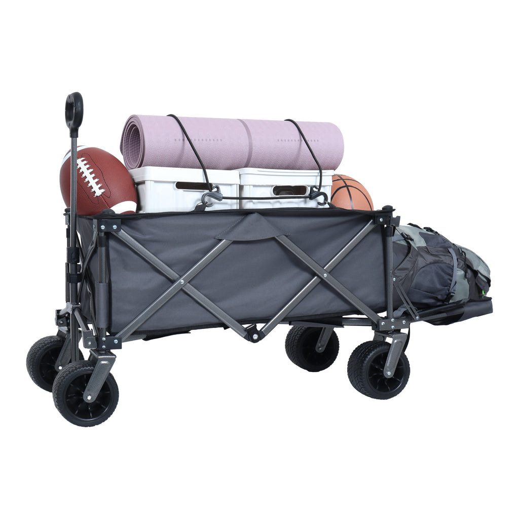 • Spacious & Versatile DesignWith a generous 300L capacity and an extended length of up to 49 inches, this collapsible wagon cart easily accommodates bulky items—from heavy outdoor gear and camping essentials to household goods and groceries. Its flexible design, including an extra-wide 14-inch extendable tailgate, adapts effortlessly to your various transportation needs.