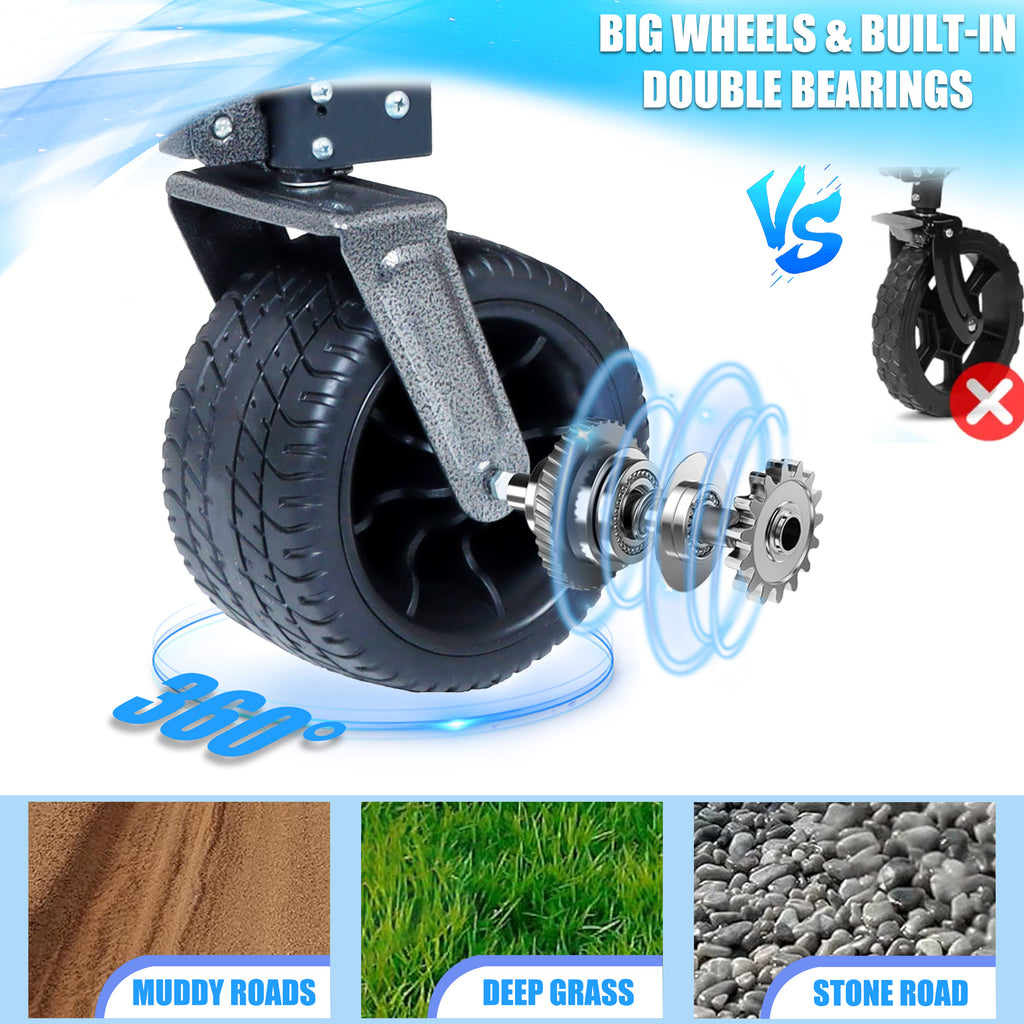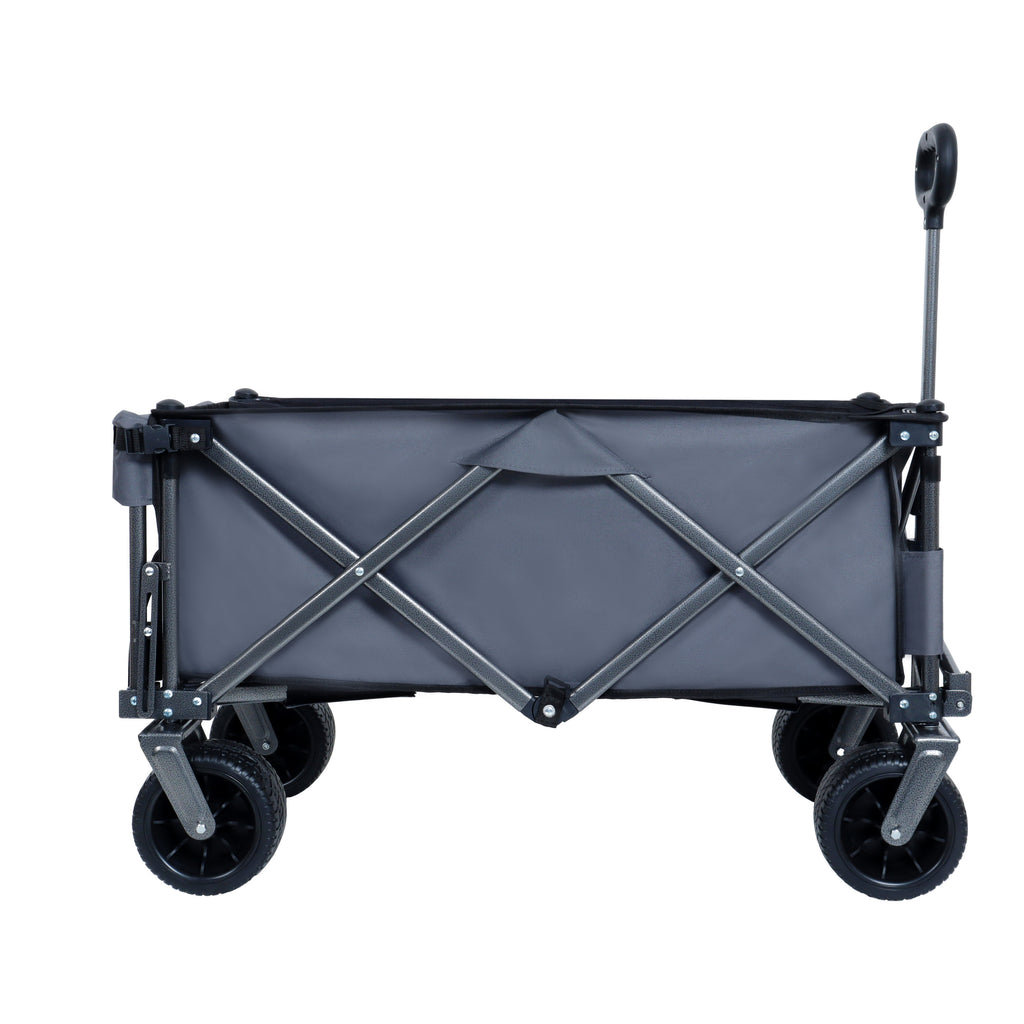 • All-Terrain PerformanceEquipped with large 7-inch all-terrain wheels and 360° rotating front casters with brakes, this wagon delivers smooth, reliable mobility on grass, gravel, or any rugged surface. Whether you're heading to a campsite or maneuvering around a busy parking lot, you can count on its robust performance.