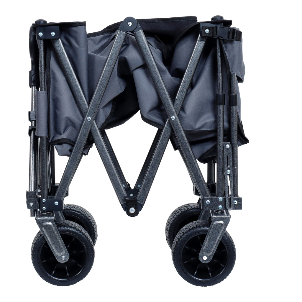 • Effortless Setup & Compact StorageEnjoy a hassle-free experience with a design that requires no assembly. The wagon sets up in seconds—often with just a single hand—and folds down compactly (approximately 14.2' x 10.9' x 29.1'), making it perfect for storage in your trunk, garage, or closet.