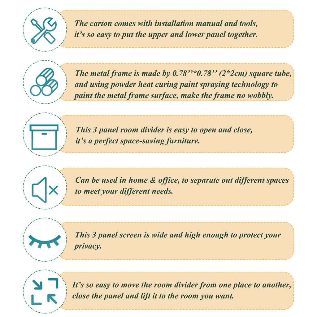 • Hassle-free Package: You will receive 1 box containing 3 panel room separators, along with parts and tools required for easy installation.