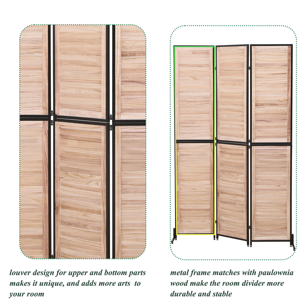 • Premium Quality Material: Our room divider boasts of a sturdy metal frame and paulownia wood construction, ensuring durability and longevity. This free standing privacy screen can be used in any place, without leaning on a wall.