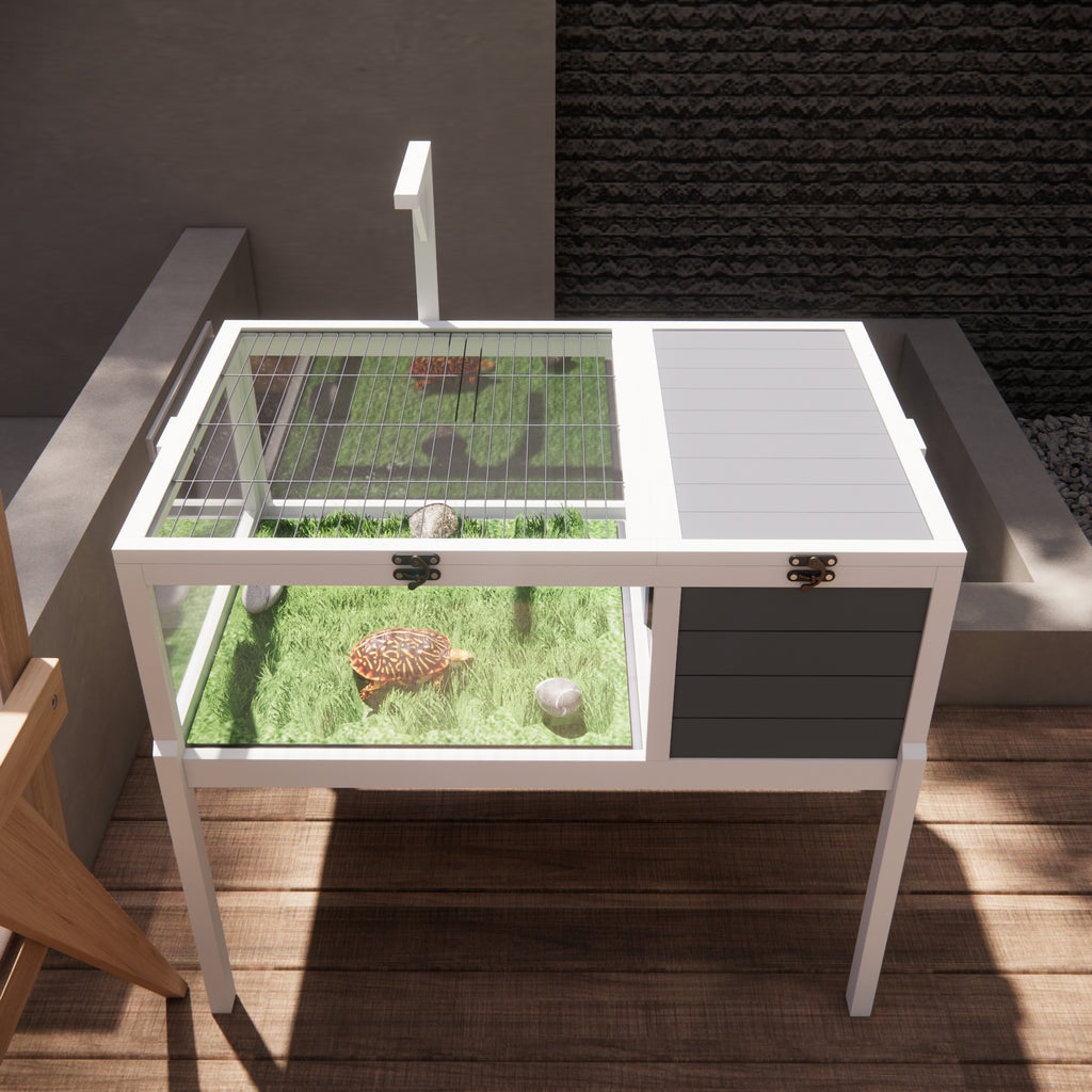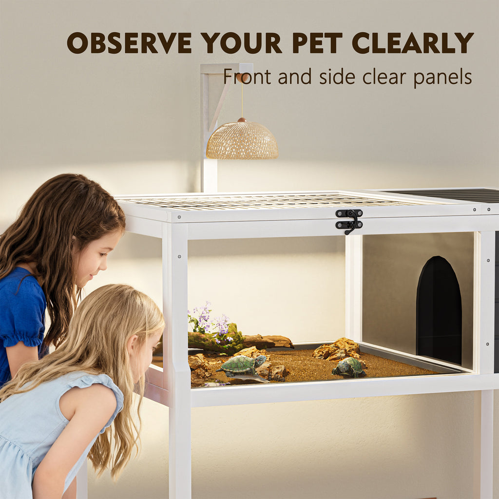 Reptile Habitat Tortoise House with Lamp Holder, Large Observation Window, Waterproof Tray, Detachable Legs, Easy to Clean Wooden Enclosure for Turtles, Lizards, Geckos, and Small Pets Indoor Outdoor