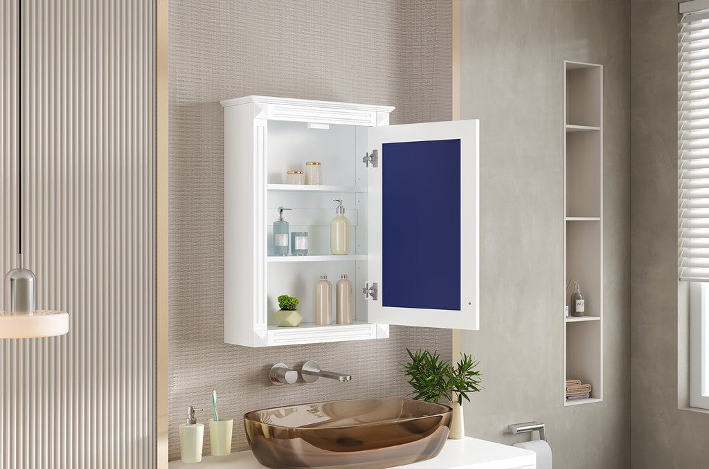 The cleverly designed mirror cabinet combines storage and mirror functions, meeting your daily storage needs with providing a practical bathroom mirror. It saves space and adds a sleek, modern touch to your bathroom, perfectly blending functionality and aesthetics.