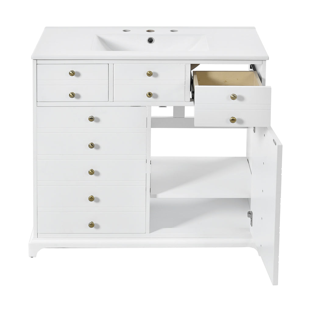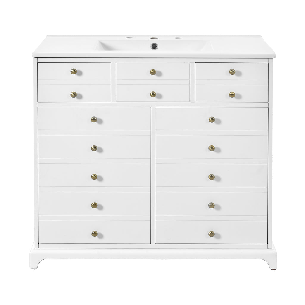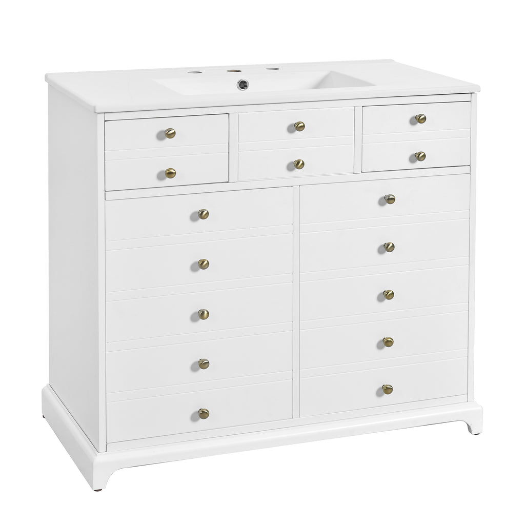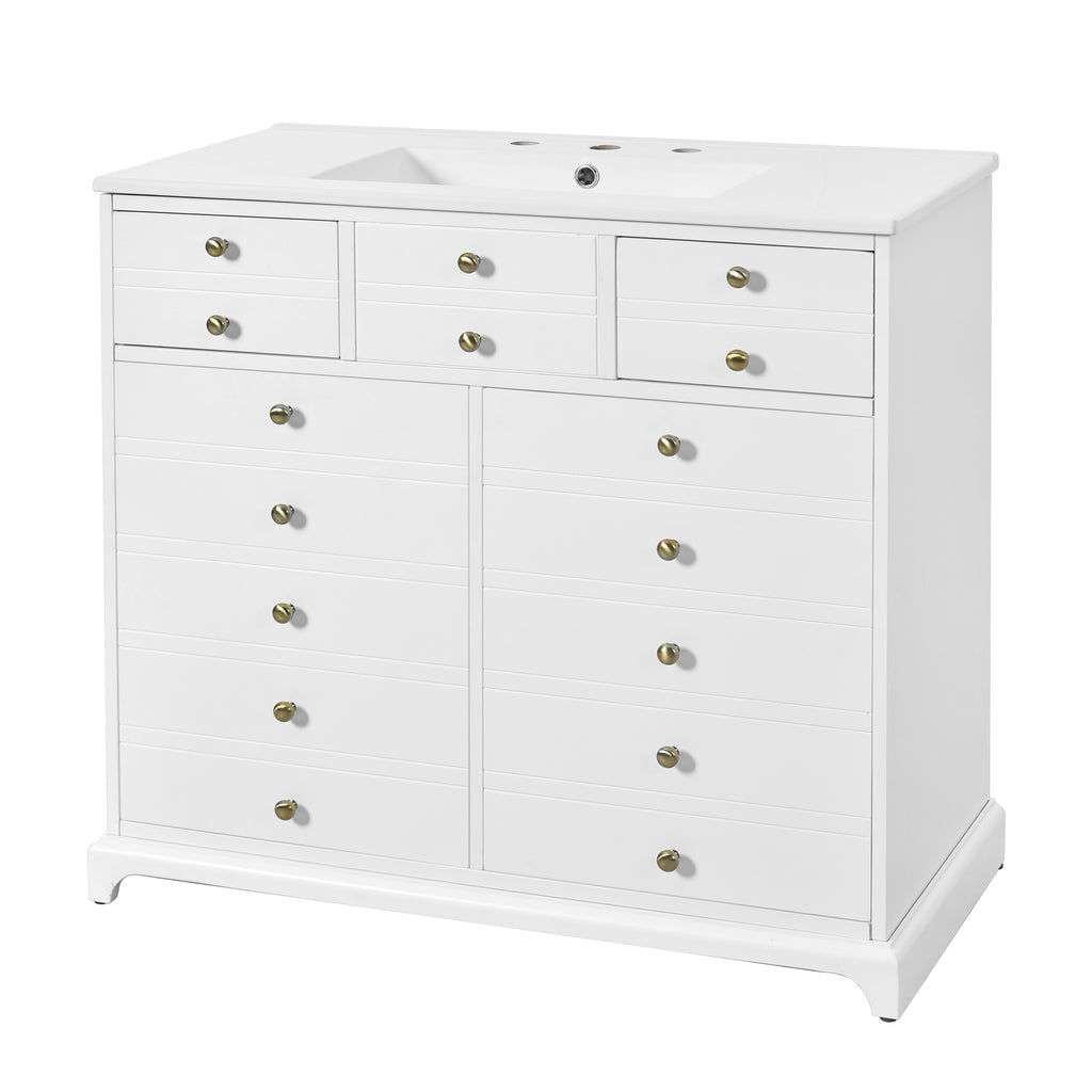 - [ Multi-Purpose Cabinet & Concealed Storage ] Are you looking for stylish and functional storage solutions for your bathroom? Our bathroom vanity provide ample space for all your toiletries and bathroom essentials. The combination of the cabinet body and the drawer perfectly stores all kinds of bathroom products and keeps the necessities away from water stains and dust. Soft-close doors and drawer fronts feature a water-resistant paint finish for durability.