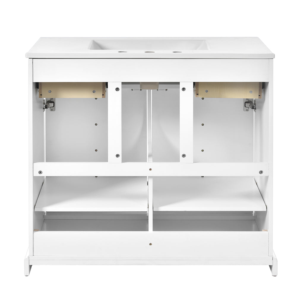- [Amber Storage] In order to meet your storage needs for various items, this bathroom vanity is equipped with very sufficient storage space. The entire bathroom cabinet has 2 drawers for daily necessities, and 2 cabinets for medium and large items .