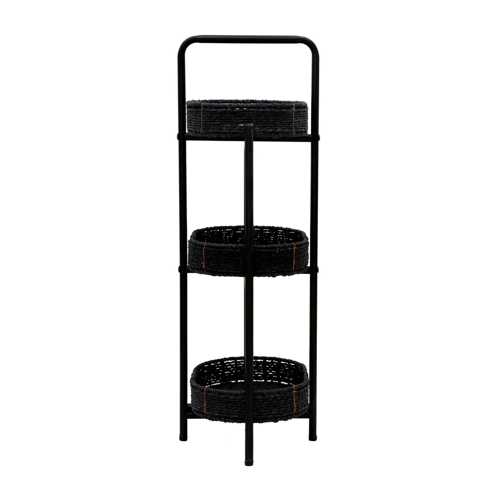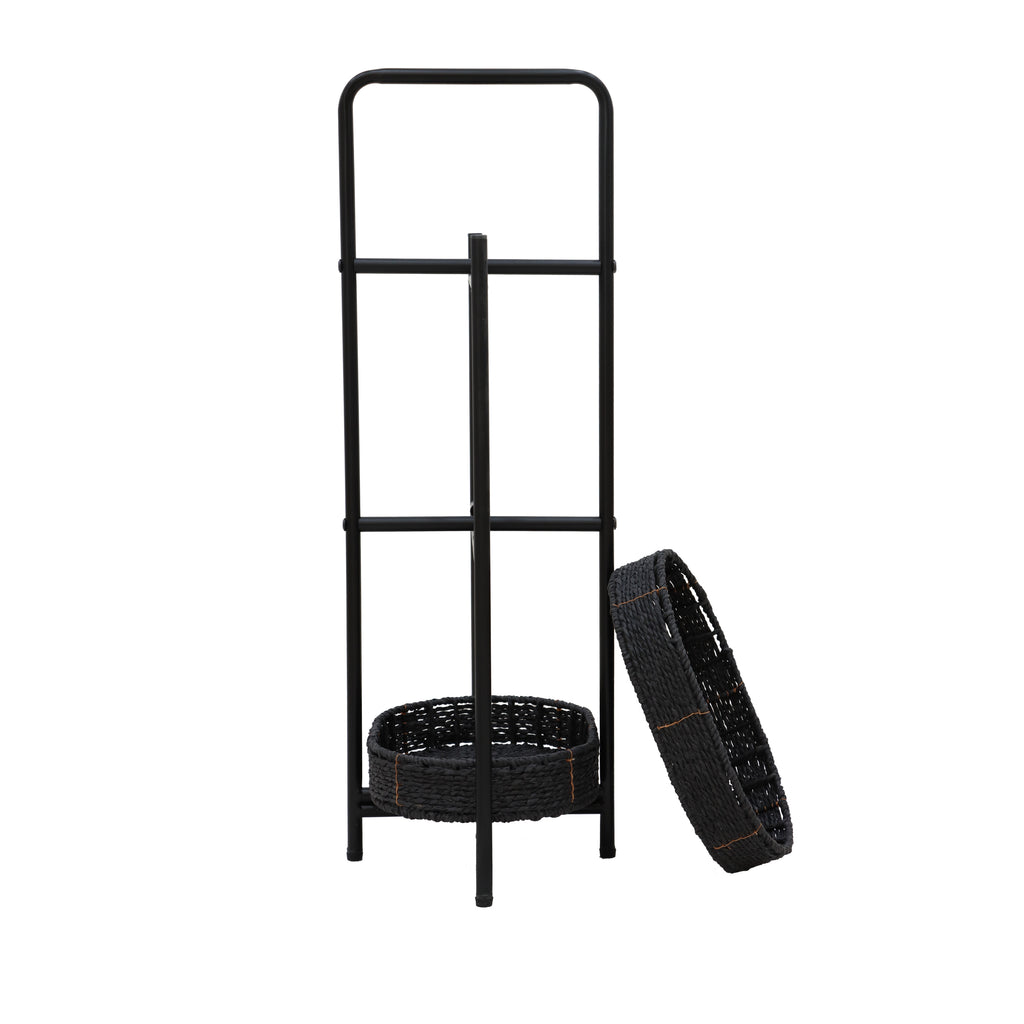 Modern 3-Tier Handwoven Side Table with Oval Organizer in Black Metal and Paper Rope