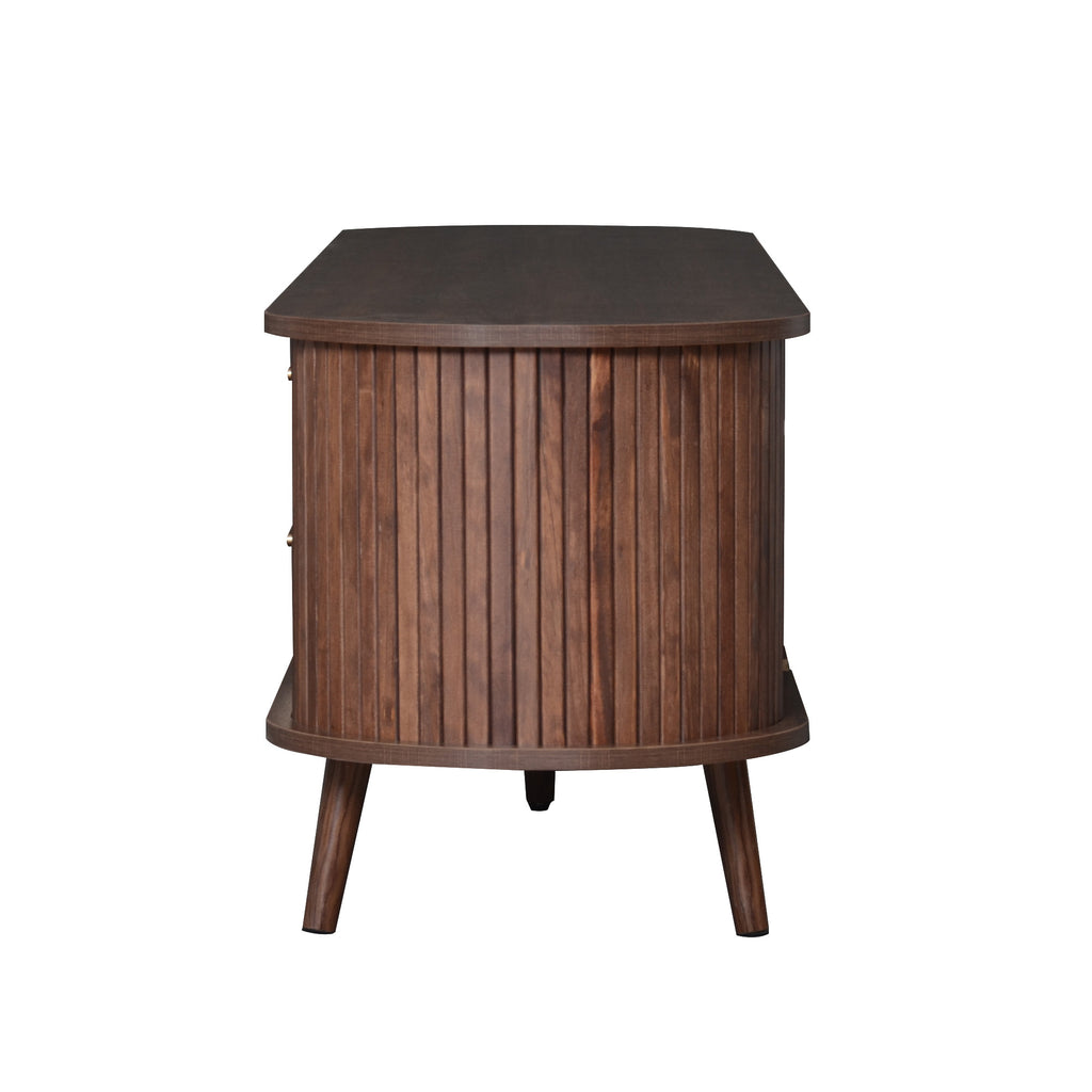 Introducing our premium TV stand that combines functionality with timeless elegance. Crafted with solid wood legs and finished with a smooth waterproof surface, this durable piece resists moisture and daily wear while maintaining its sophisticated appearance. The smart storage design features smooth-gliding sliding doors for easy access and two spacious drawers, offering versatile space to organize media devices, remotes, and cables. Showcasing a beautiful natural woodgrain texture and exquisite handles, this TV stand effortlessly complements any home decor style from contemporary to classic, making it both a practical storage solution and an attractive addition to your living space.