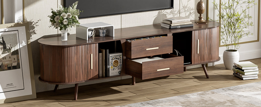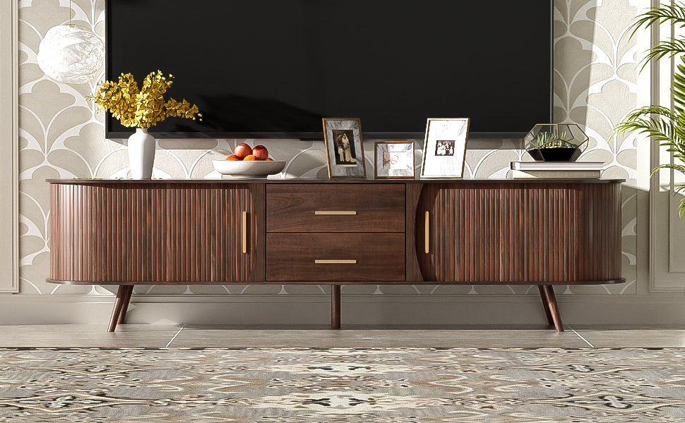 Mid-Century Modern TV Stand for 80' TV, Entertainment Center with Storage for Living Room, Bedroom, Media Console Table with 2 Drawers