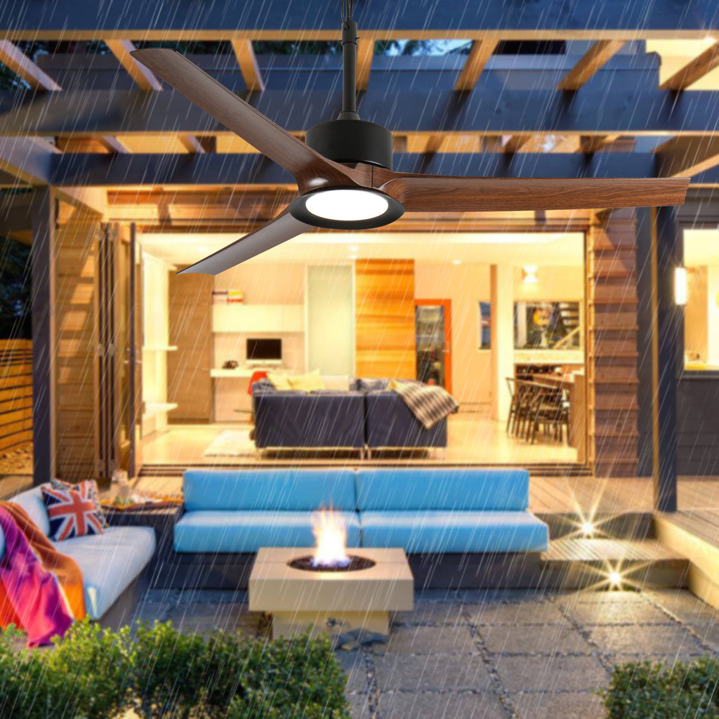 Outdoor Ceiling Fan with Light: 52 Inch Black Waterproof Gazebo Fans with Lights Outdoor Hanging 6 Speed Reversible DC Motor