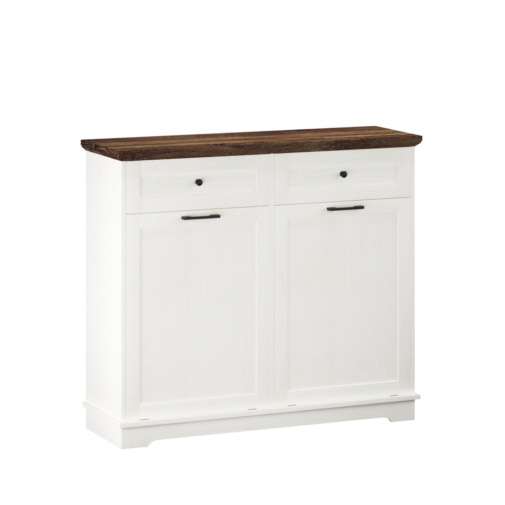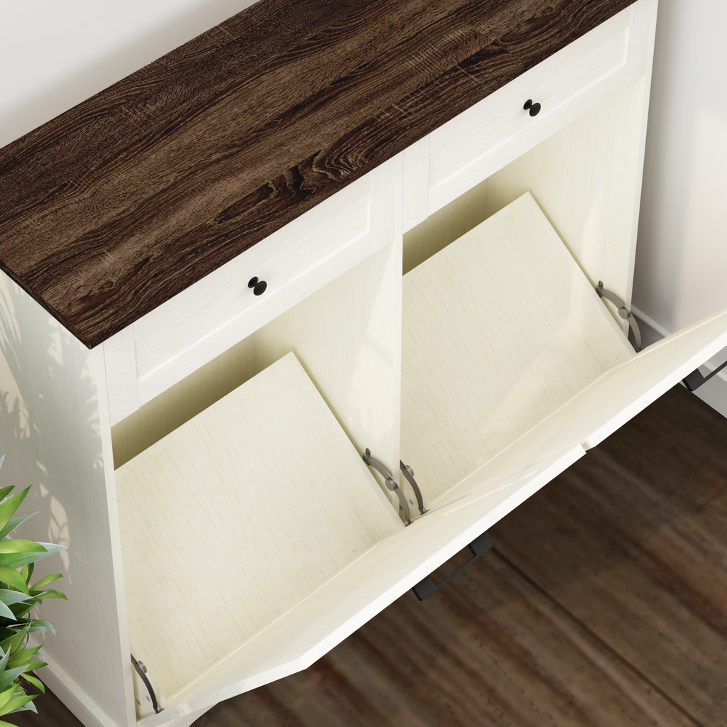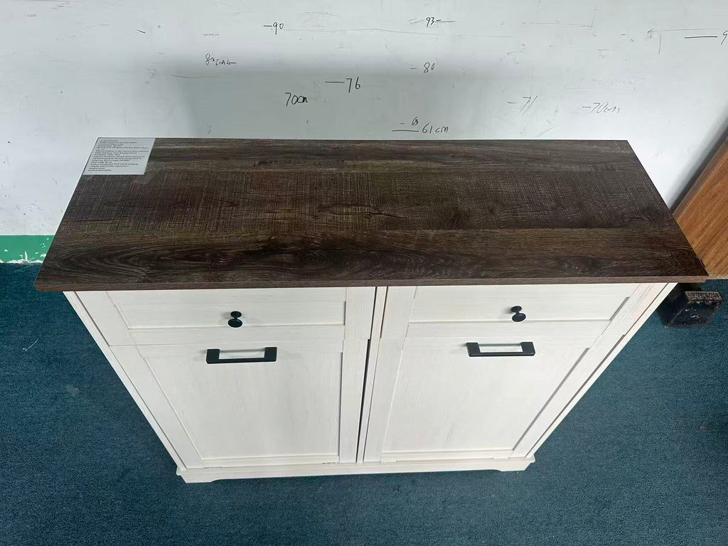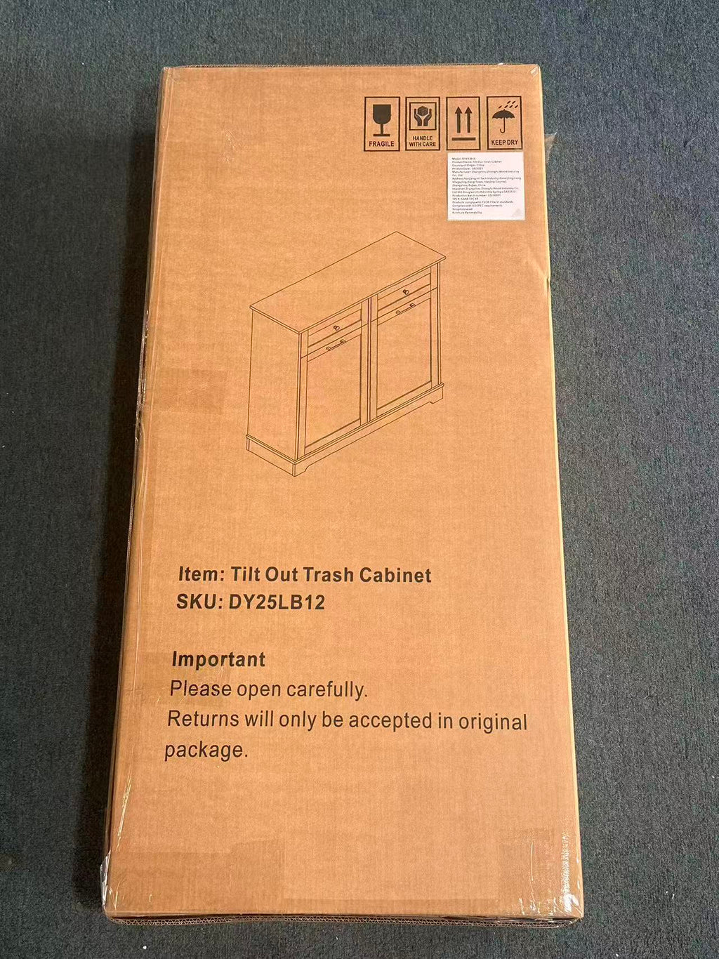 • Modern Trash Cabinet: Double Tilt out trash cabinet is simple and practical. It can be easily incorporated into a variety of decorating styles. It will be perfect for dressing up your kitchen, home, apartment, dorm room, etc. It also can be used as a kitchen island or suitable to store dog food, cat food, etc., and the top can be used to place decorations, daily supplies and so on