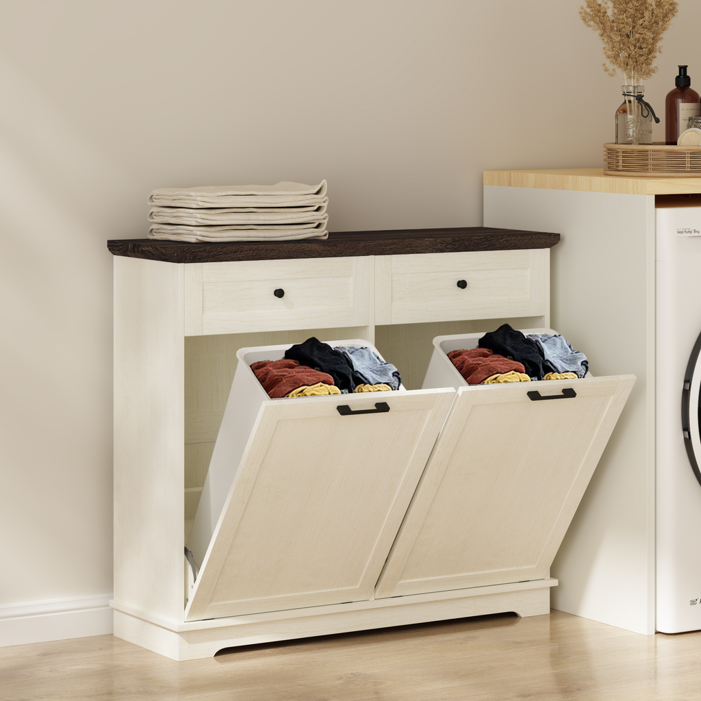 • Multifunctional Design: The trash cabinet is not only a practical kitchen trash can but it can also be used as the laundry basket or recycling bin, as well as a pet food bin. The drawers provide the convenient storage space for small sundries