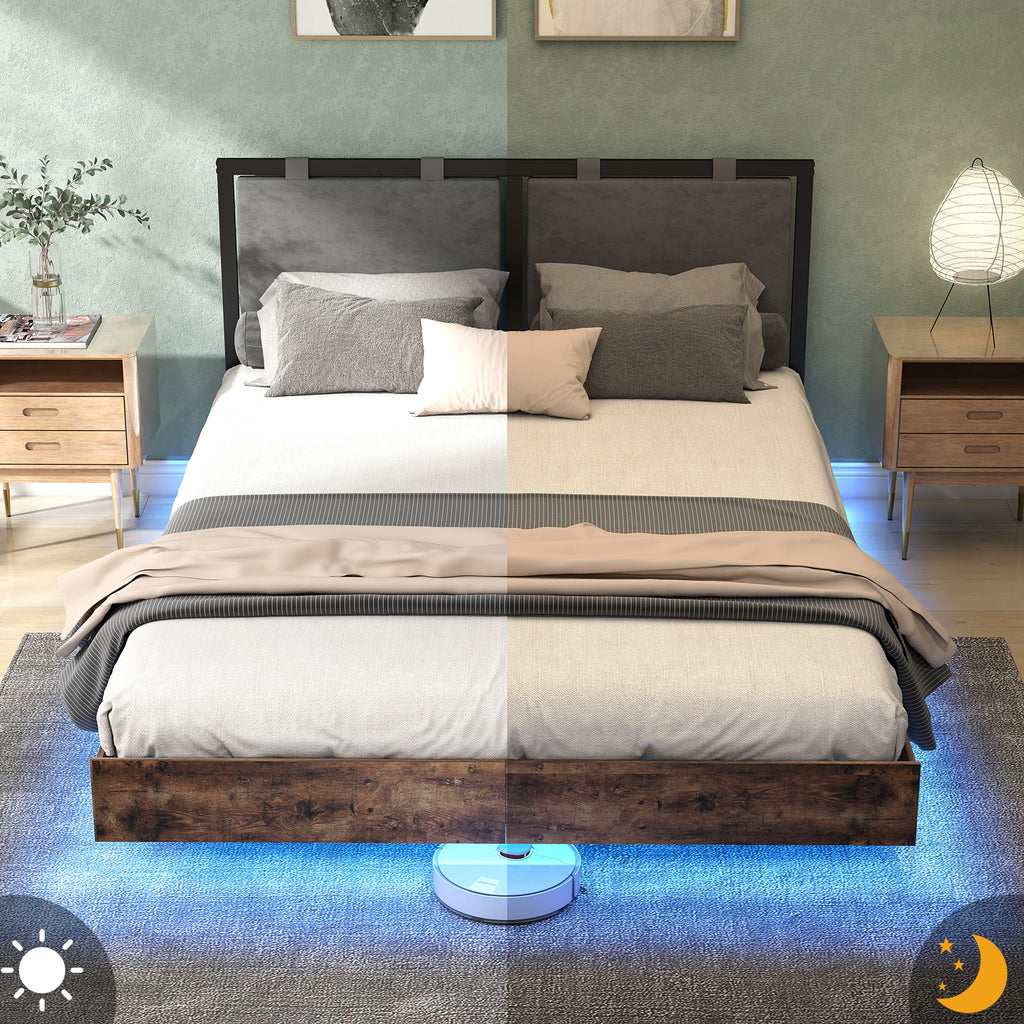 Floating Bed Frame with LED Lights, Hanging Upholstered Headboard No Box Spring Needed,Full Size