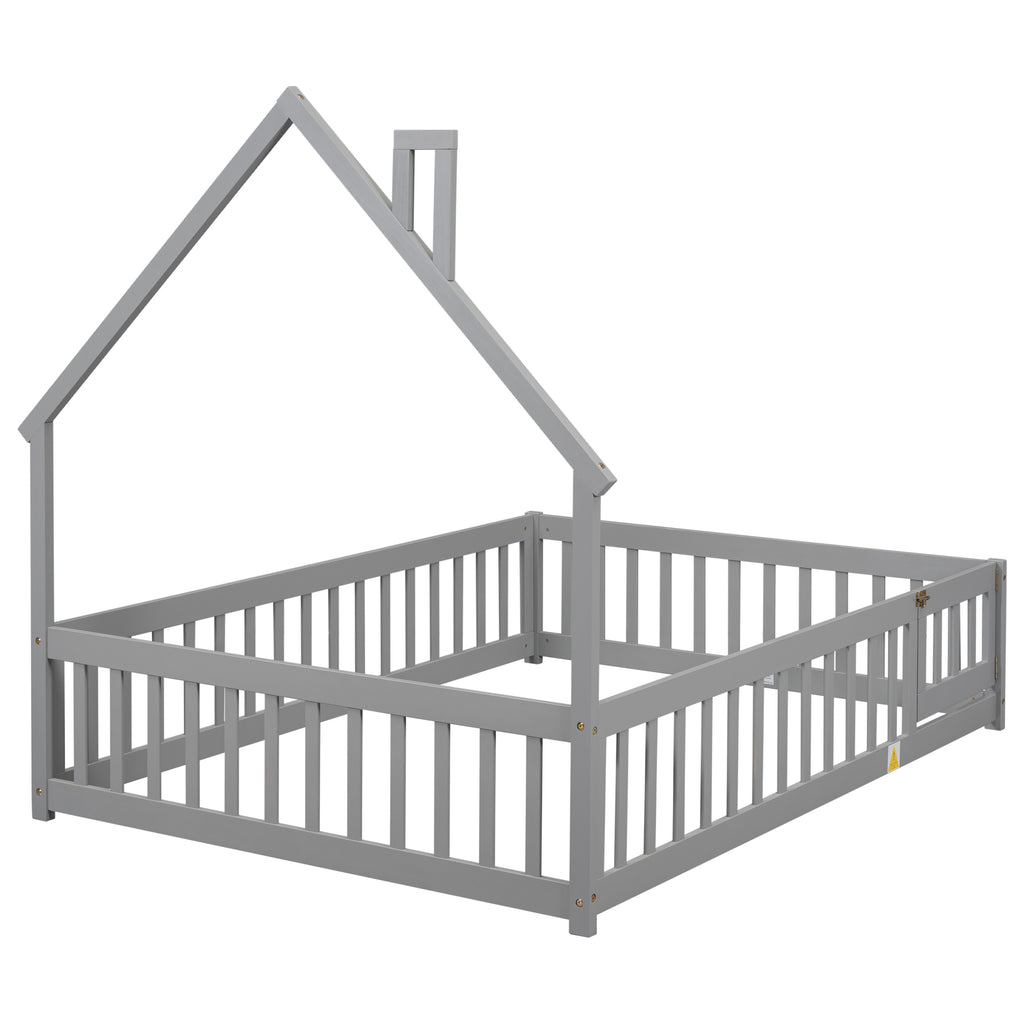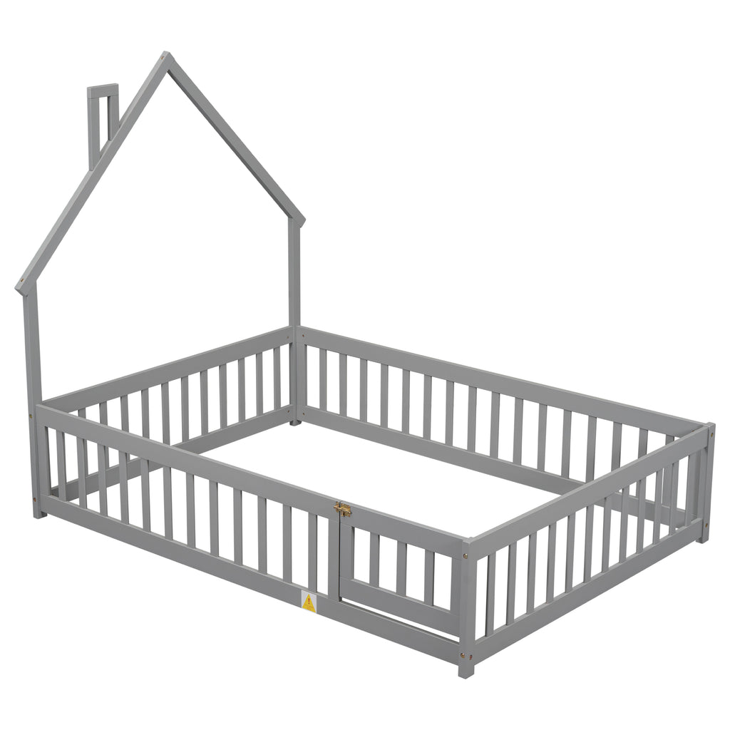- #2 [Bed Platform with Fence Design] The bed platform with the fence guardrails and the door with a latch, not only provides better fun and joy, but also reduce any concerns about the safety. The guardrails around the bed are designed to have a small door to made easy to get in and out of the bed.