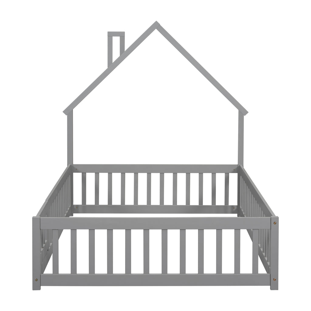 This bed with house-shaped frame headboard, and a twin bed frame (without slats) with fence guardrails around the bed. The bed headboard with an attracting house-shaped design will make this bed an outstanding centrepiece in the bedrooms for the decoration to keep your room funny and interesting constantly.