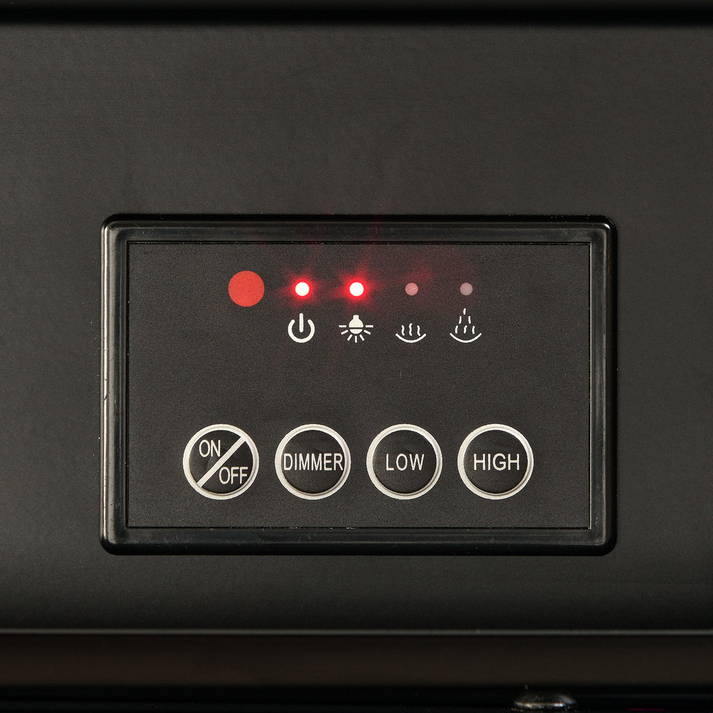 • 3 D realistic LED flames: Ultra high intensity LED lights provide realistic flame effects. The flame effect can also be activated without heat. The brightness of the flame can also be controlled through a remote control. This makes our fireplace a decorative fireplace, with a high or low fire effect throughout your entire winter.