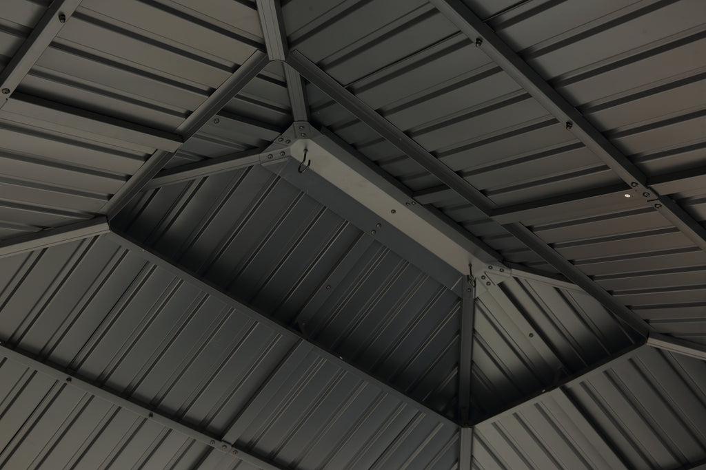 Keep you and your patio furniture protected from rainwater and shade UV with its reliable slanted steel roof. The grooved design provides your pavilion with fast, efficient rain slide to stay dry and cool.