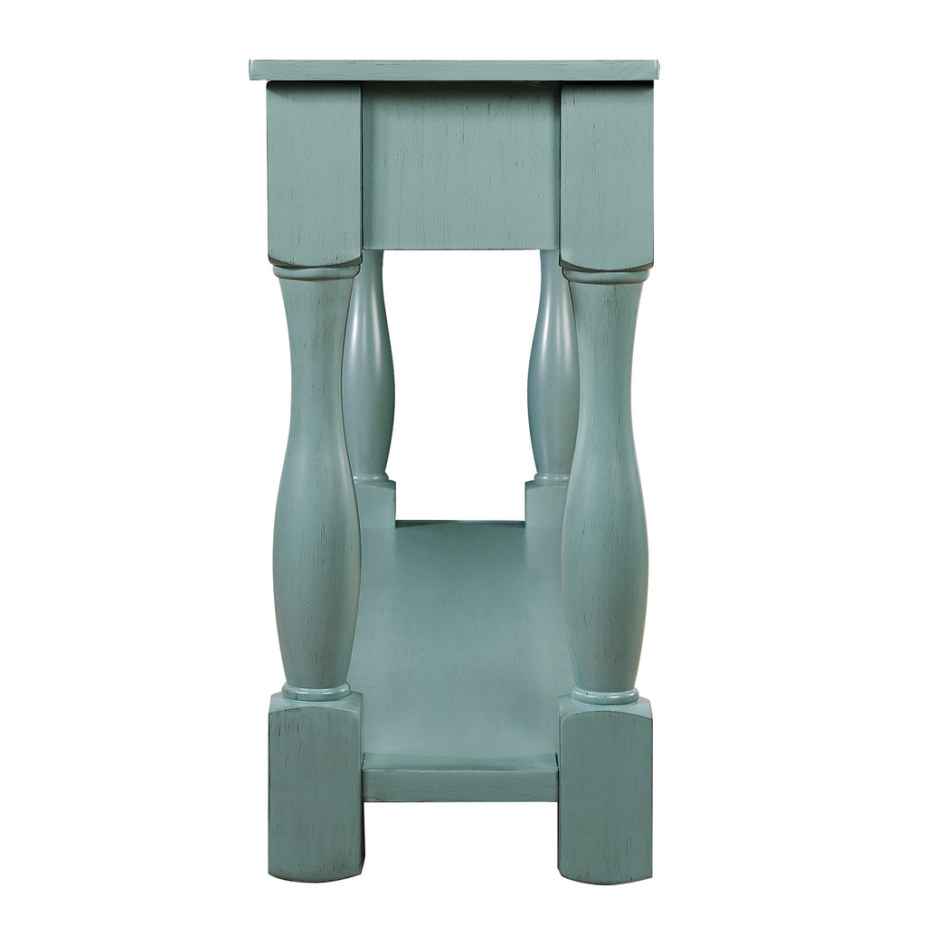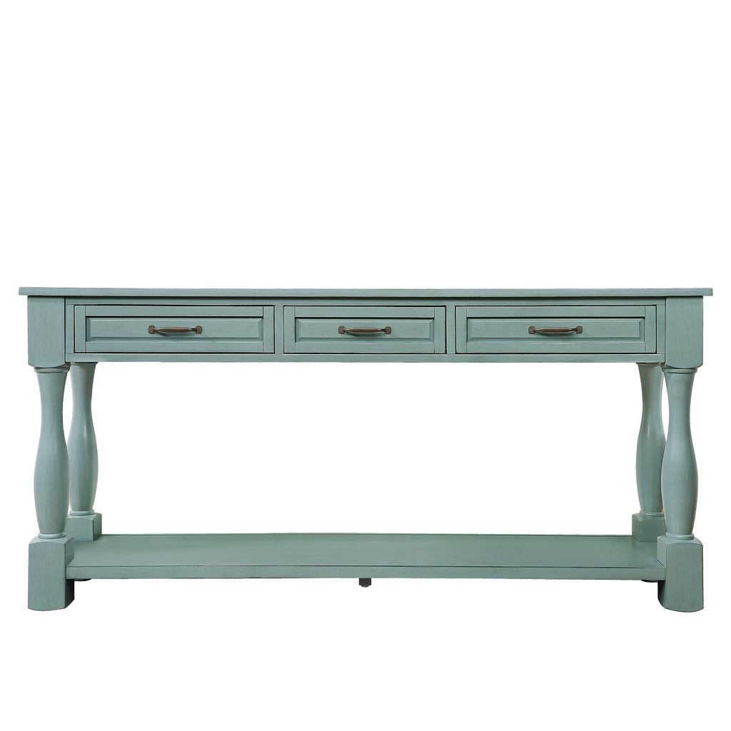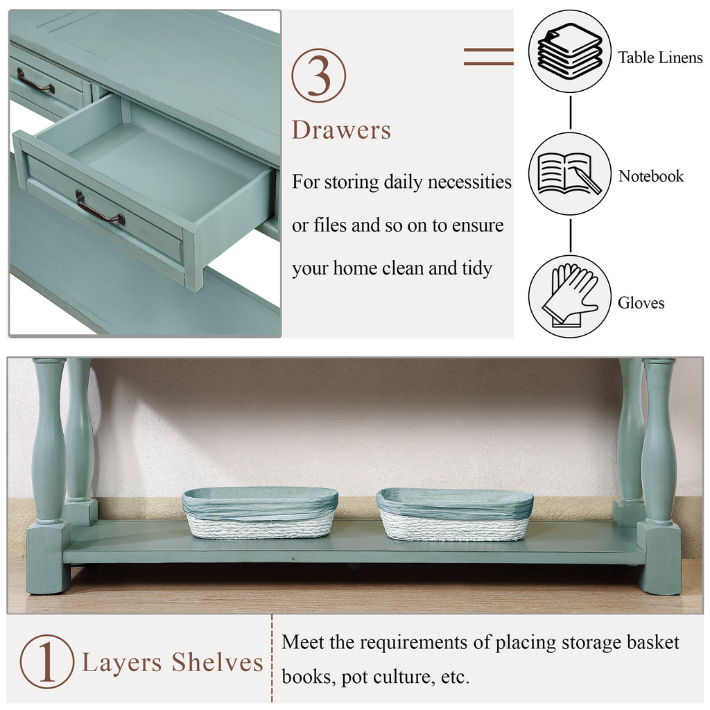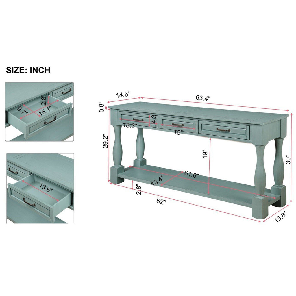 63inch Long Wood Console Table with 3 Drawers and 1 Bottom Shelf for Entryway Hallway Easy Assembly Extra-thick Sofa Table ( Retro Blue)