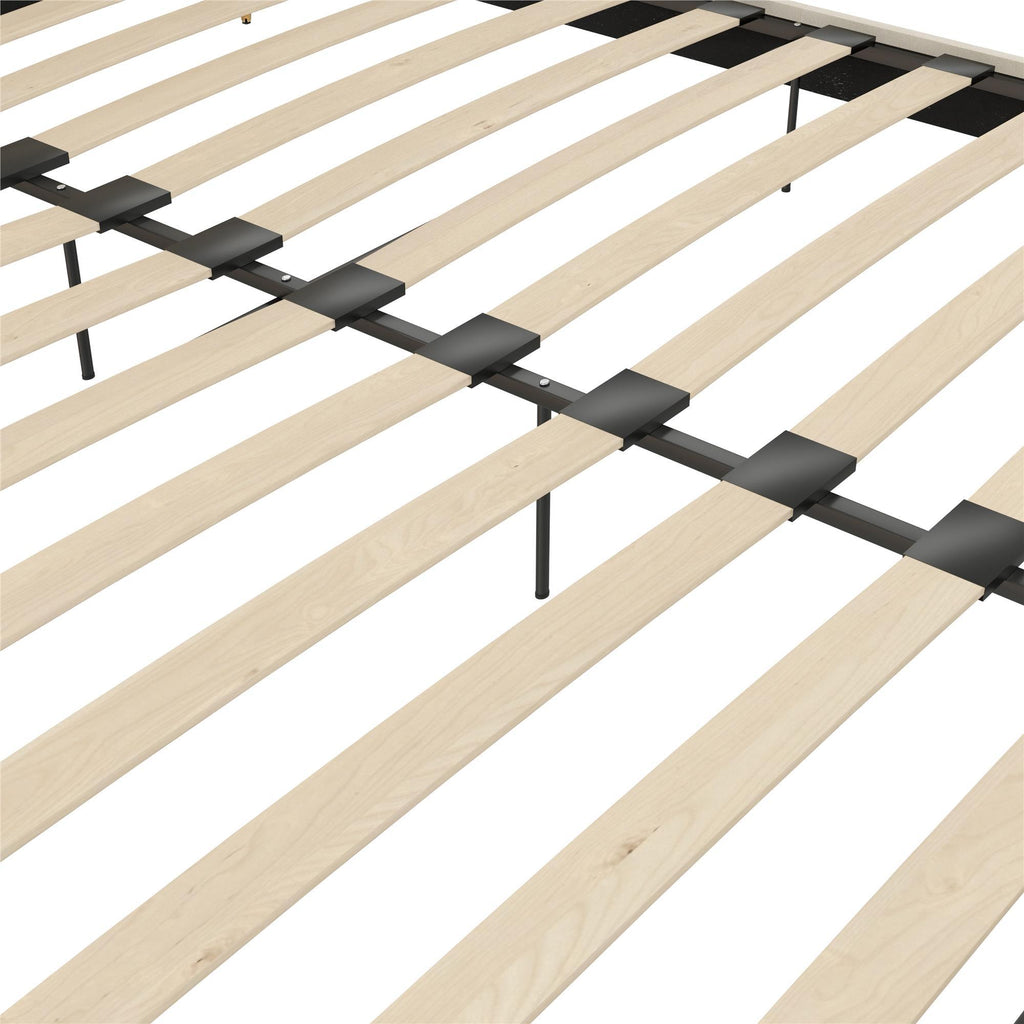 • This chic bedroom style star doesn't compromise on strength as proved by its sturdy wood frame build, bentwood slats, metal side rails and center legs, that when combined, ensure furniture longevity and mattress support for comfortable sleep