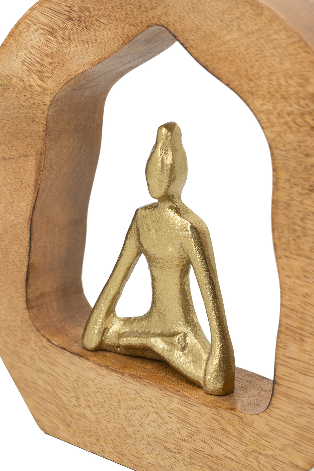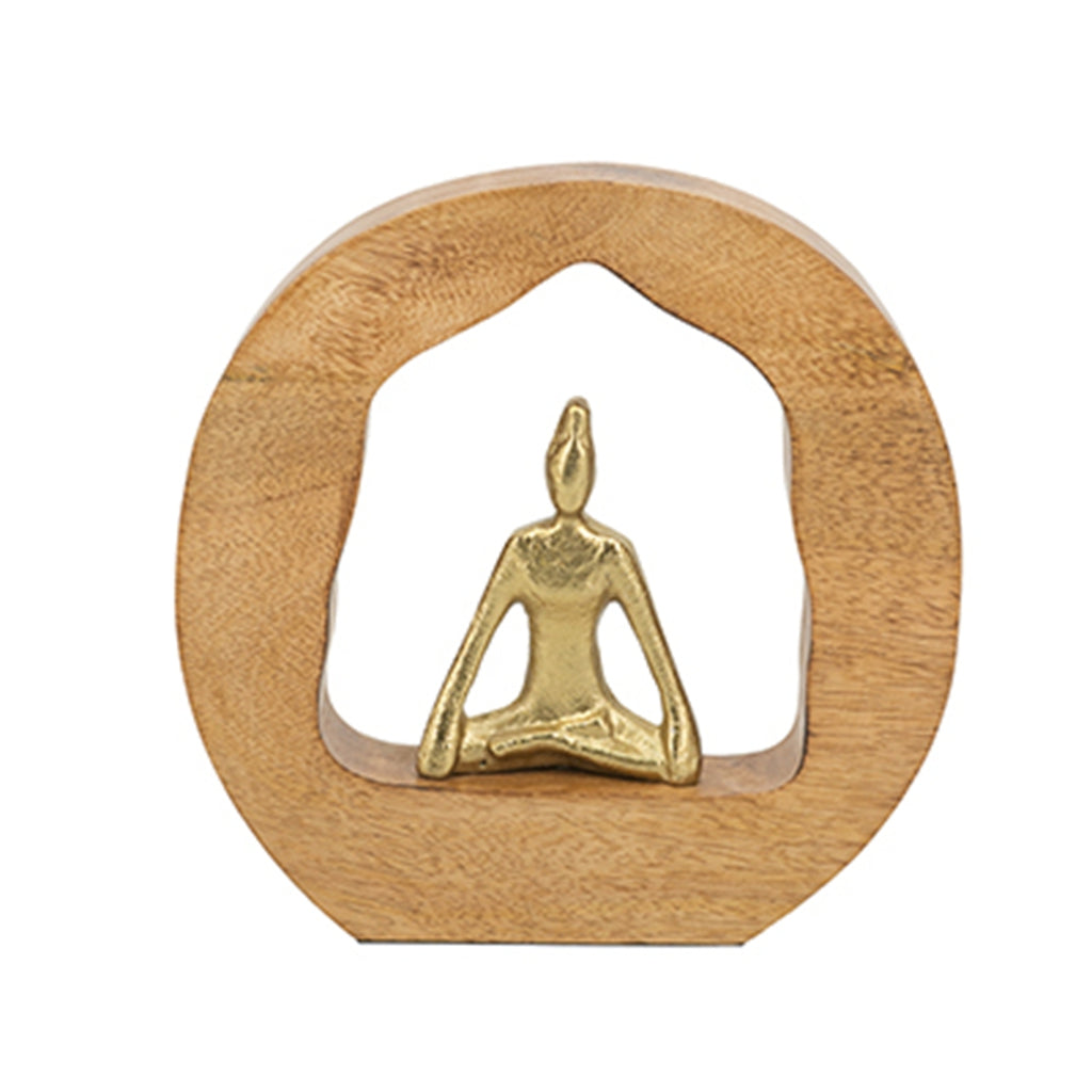 Masterfully showcasing the beauty in tranquility, this sculpture depicts an abstract aluminum figurine, sitting peacefully at the center of a genuine mango wood surrounding. An ideal size for your living room tabletop, office desk, or bedroom dresser, this sculpture will infuse your home with a profound sense of relaxation while elevating your existing ensembles.