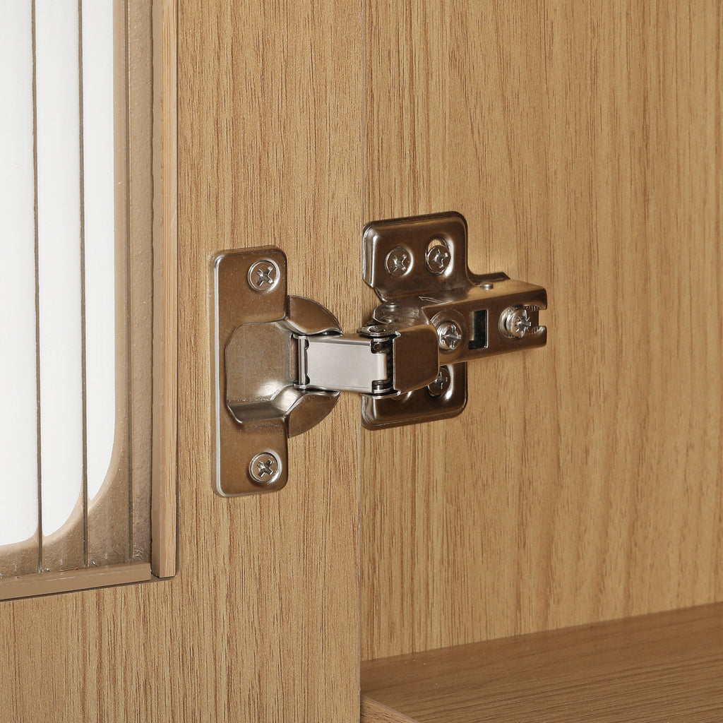 Each side features an adjustable shelf. Height-adjustable shelves inside the cabinet doors provide flexibility in accommodating various kitchen items of different sizes.