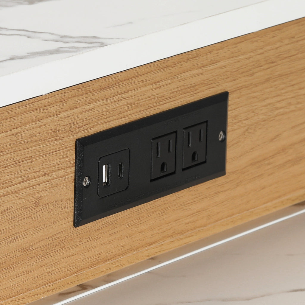 This elegantly designed kitchen island includes a sophisticated built-in power outlet, featuring 2 AC outlets, 1 USB port and 1 Type-C port to effortlessly meet all of your kitchen appliance power requirements.