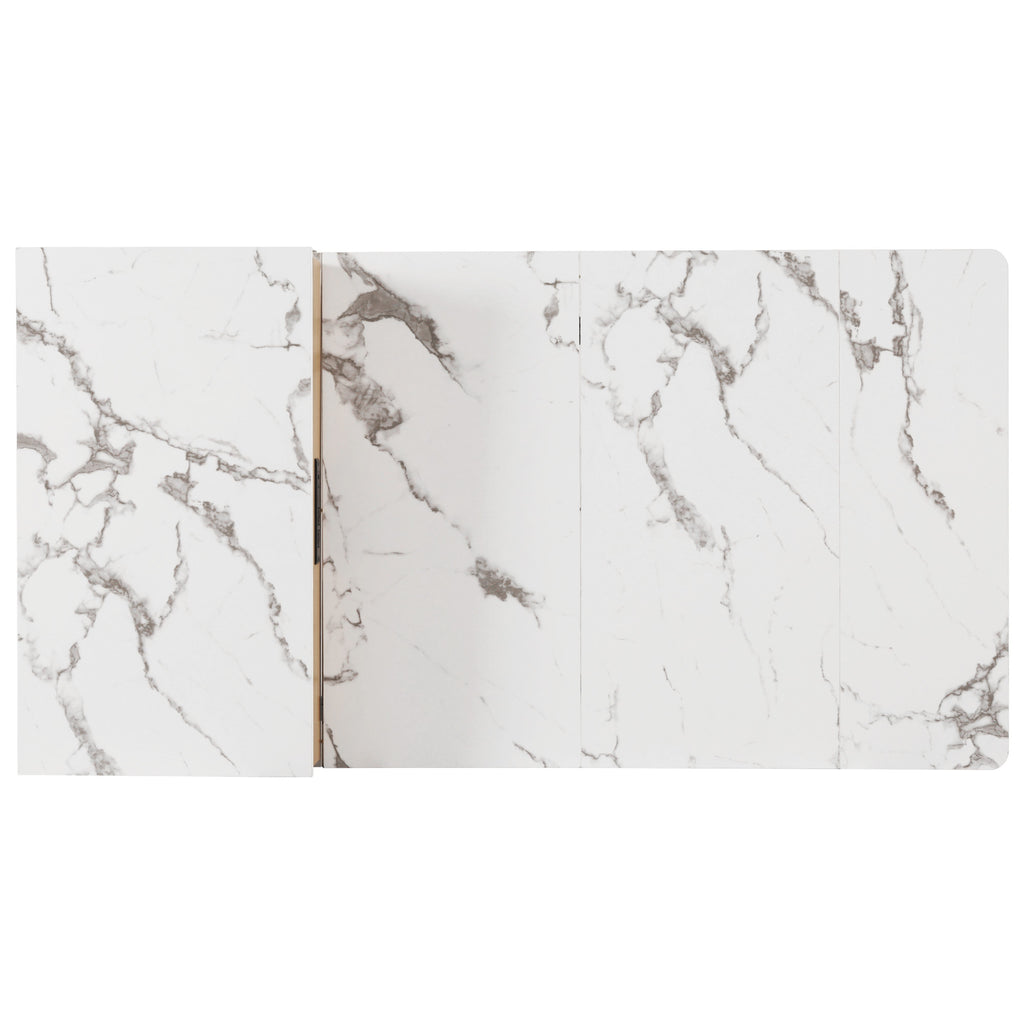 Highlights [10.2'-26'-41.8' Extendable Dining Table Design] [59.5'x31.5' Large island] [Ample Storage Space][Space-Saving Design] [Glass Cabinet Door][Double-sided Cabinet Storage] [Side 2 Open Shelves with Guardrails][Adjustable Shelves] [Two Removable Tabletop Panels][Tabletop Panels Storage Rack] [Power Outlet with 1USB + 1 Type C] [2 * 360°Smooth Rotation Wheels][Double-sided Drawers] [Wood Grain Table/Faux Marble Table][Smooth Metal Hinges] [High Quality Particle Board and MDF Material]