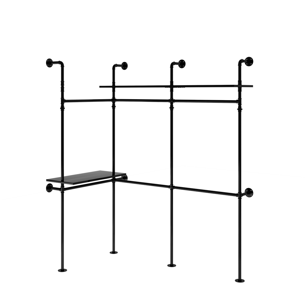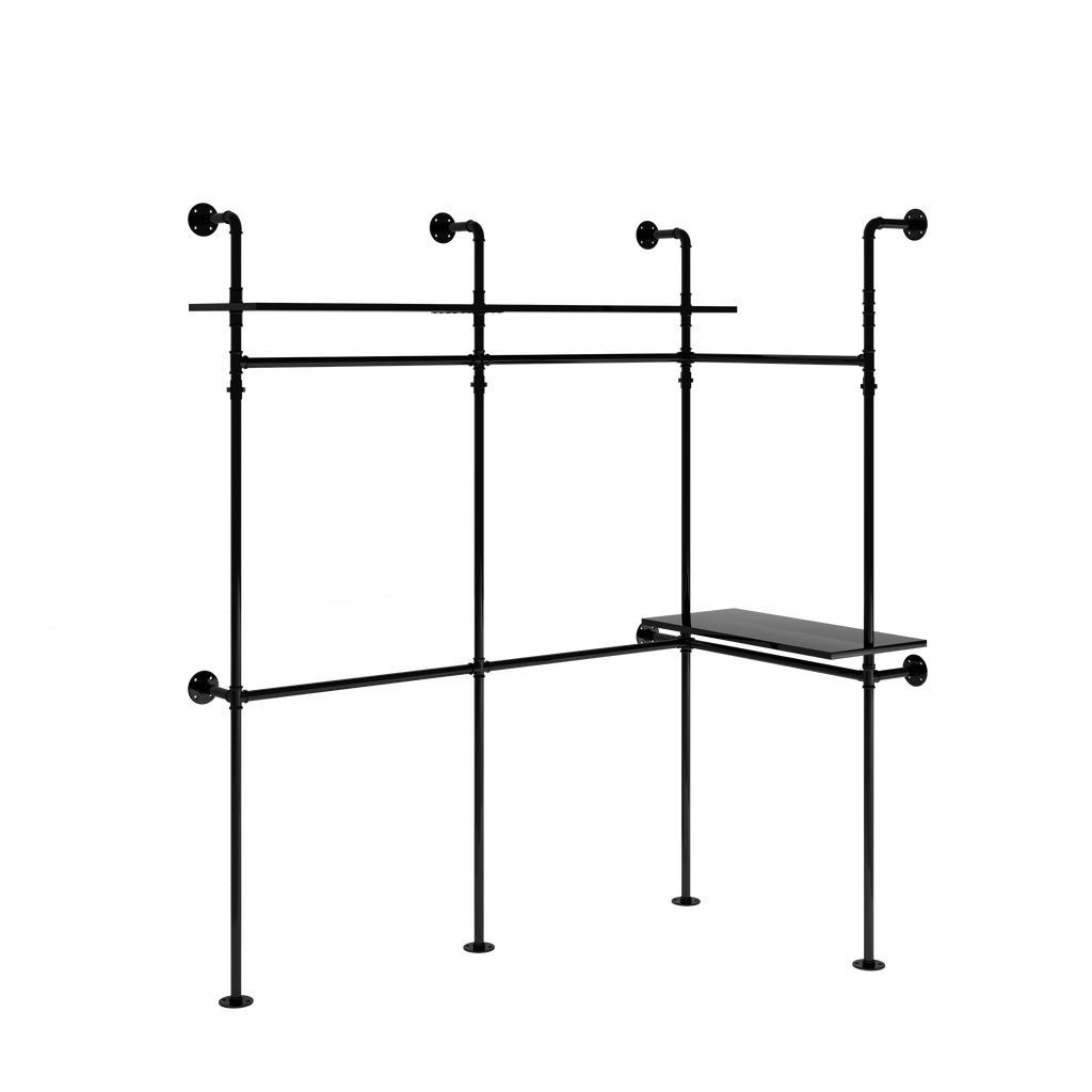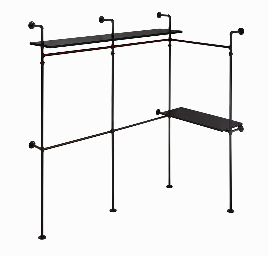- Multi-type Installations: This Garment Rack has various Installation methods to fit your different storage needs. L shape for small spaces like corner, apartment, bedroom; Straight-lined shape for walk-in closet and cloakroom clothing store. Modern industrial loft style in black scores with its simple look and distinctive.