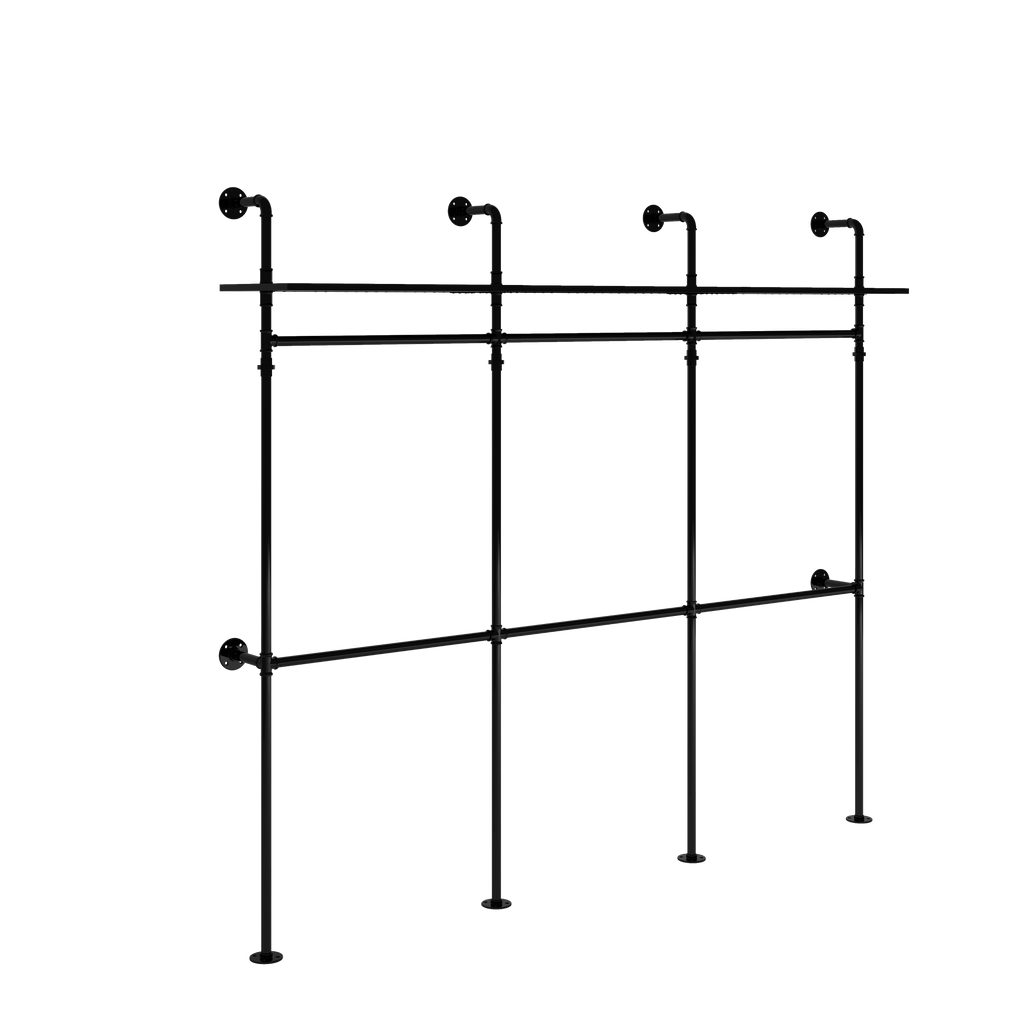 - Sturdy & Stable: This industrial clothing rack is made of heavy duty thick metal water pipes and premium particle board, sturdy and stable , no wobble and collapse. Wall-mounted Design help prevent accident overturn. Keep using it for a long years, It cans save you the cost and precious time of replacing the wall mount rack.