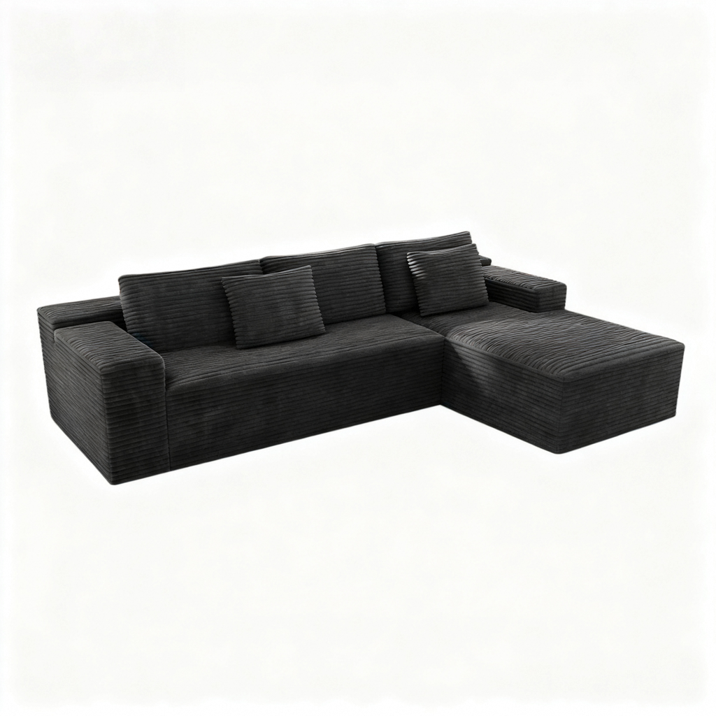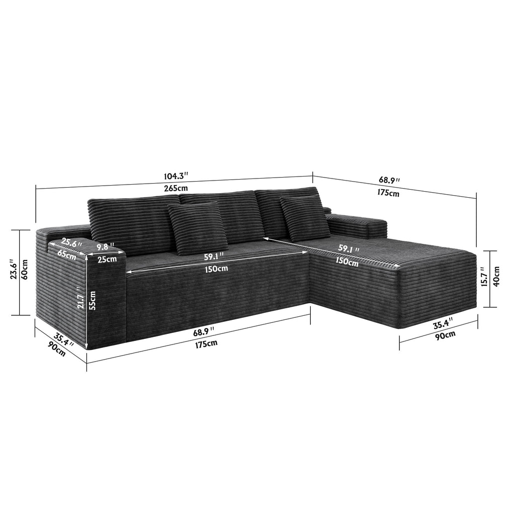 - Modular Sectional Sofa:This sectional sofa featuring a sleek design, clean lines, and high-quality plush corduroy Fabric,This sectional set maximizes space when placed against a wall,this corner sofa effortlessly adds a timeless and sophisticated touch to your home. Designed to be the focal point of attention, it's an ideal choice for elevating the ambiance of living rooms, apartments, and bedrooms.