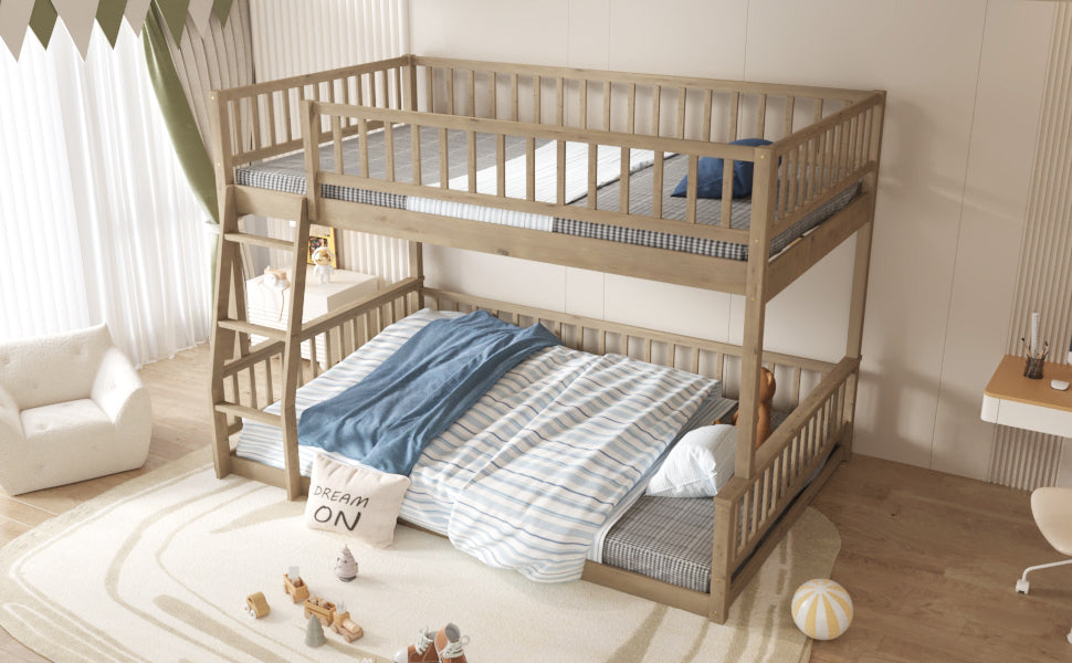 • [Safety Guaranteed] Solid wood slats blend naturally into the already sturdy frame to give added ground-up support that provides stability. The bunk bed features guard rails for added safety.
