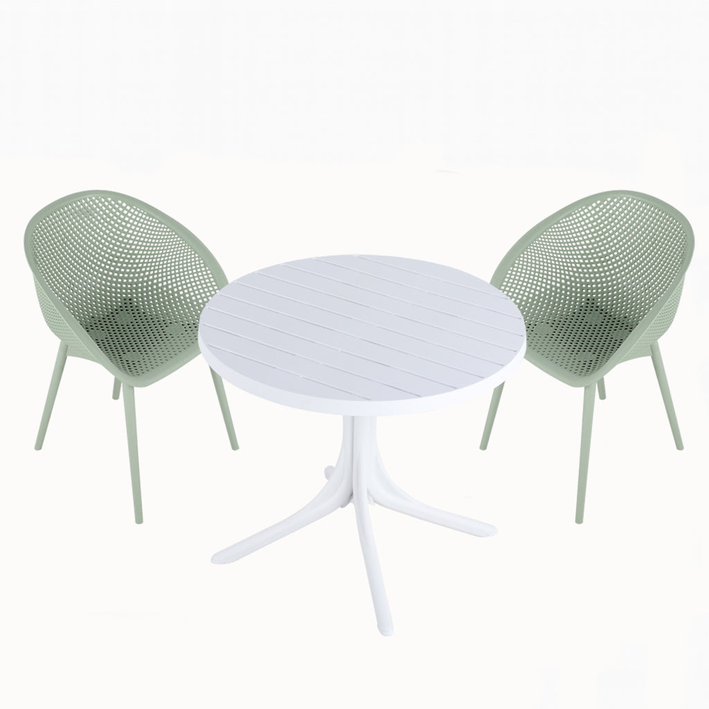 • Premium All-Weather Durability : Both the table and chairs are made of high-grade PP material: Weatherproof construction resists water, UV rays (17,520+ outdoor hours), and wear while preventing mold/mildew ; ·Zero-Maintenance Cleanup: Spills wipe away instantly – no stains or special cleaners needed.